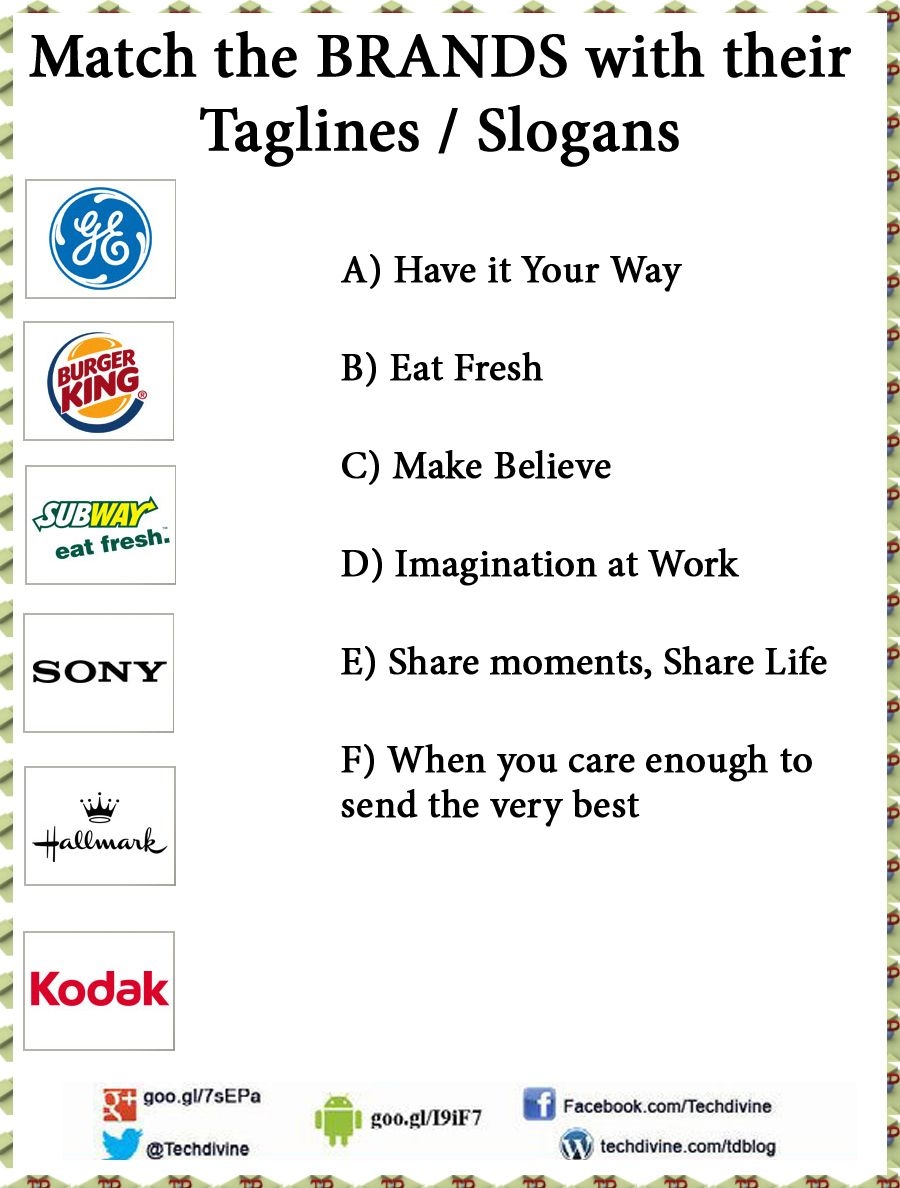 Slogan Match Up Quiz Printable Party Game Company Slogans Activity Worksheets Library