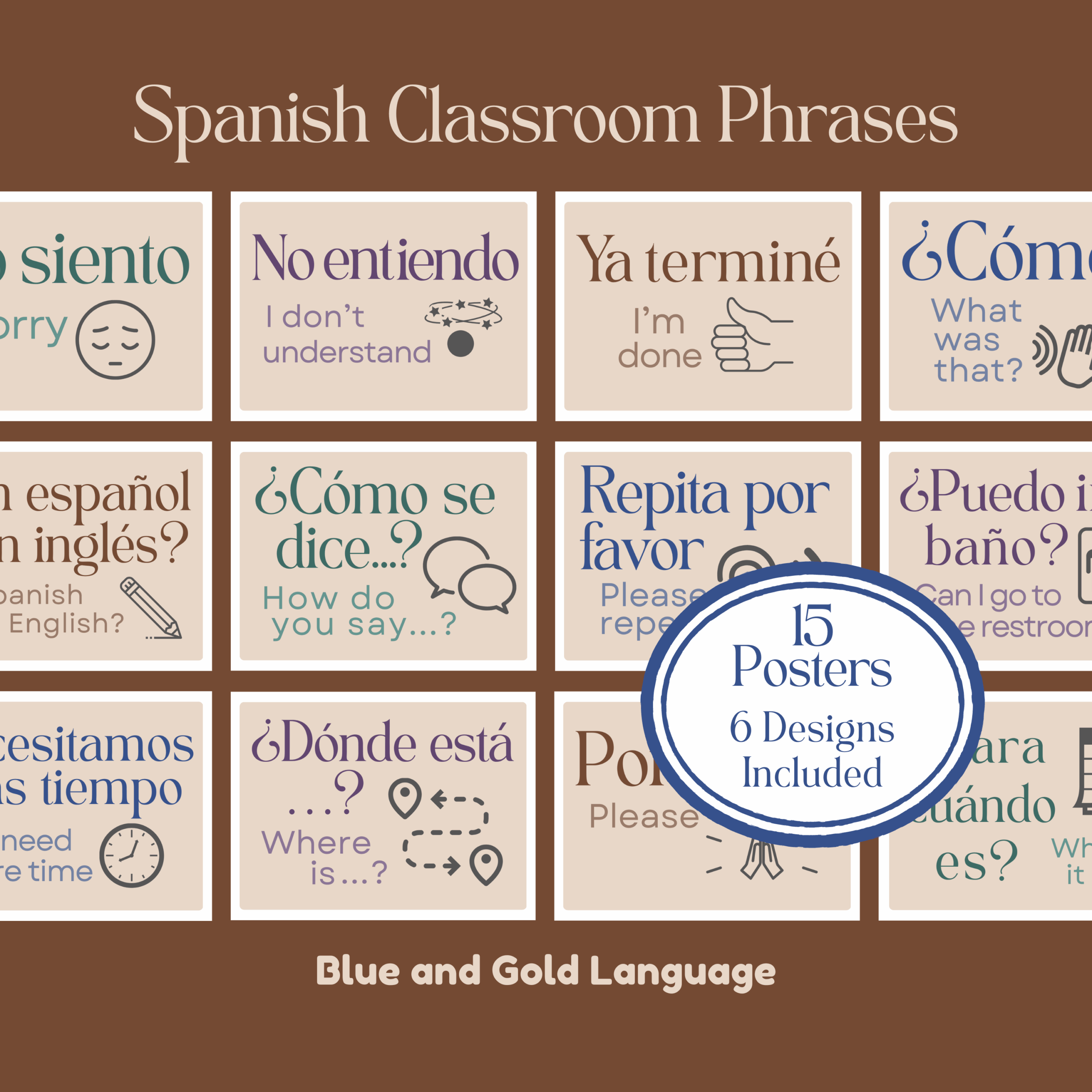 Spanish Classroom Phrases Poster Set Of 15 Boho Neutrals Modern 6 Designs Included Wall Art Made By Teachers