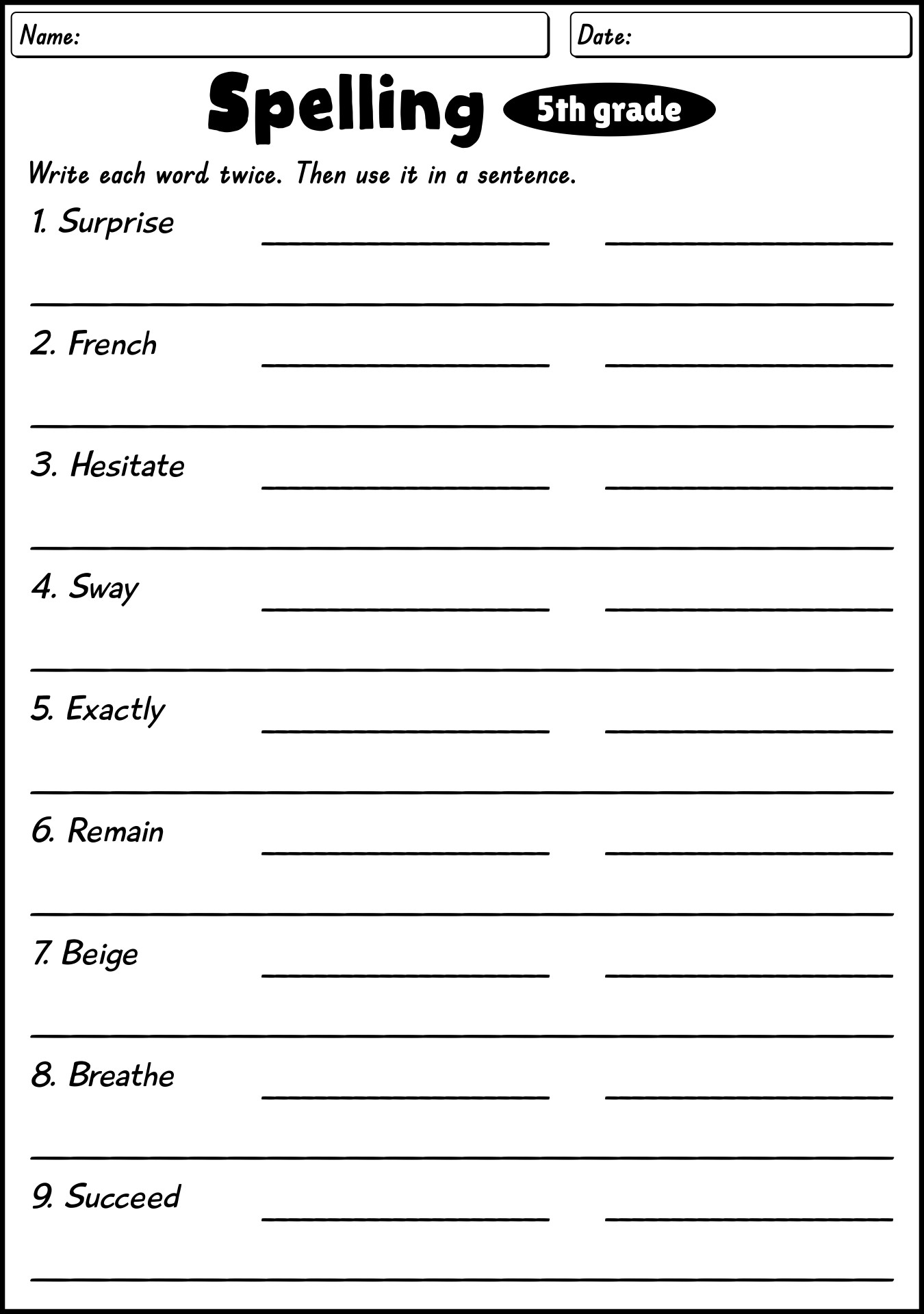 Fifth Grade Spelling Worksheets Printable Word Lists U0026 Weekly Practice