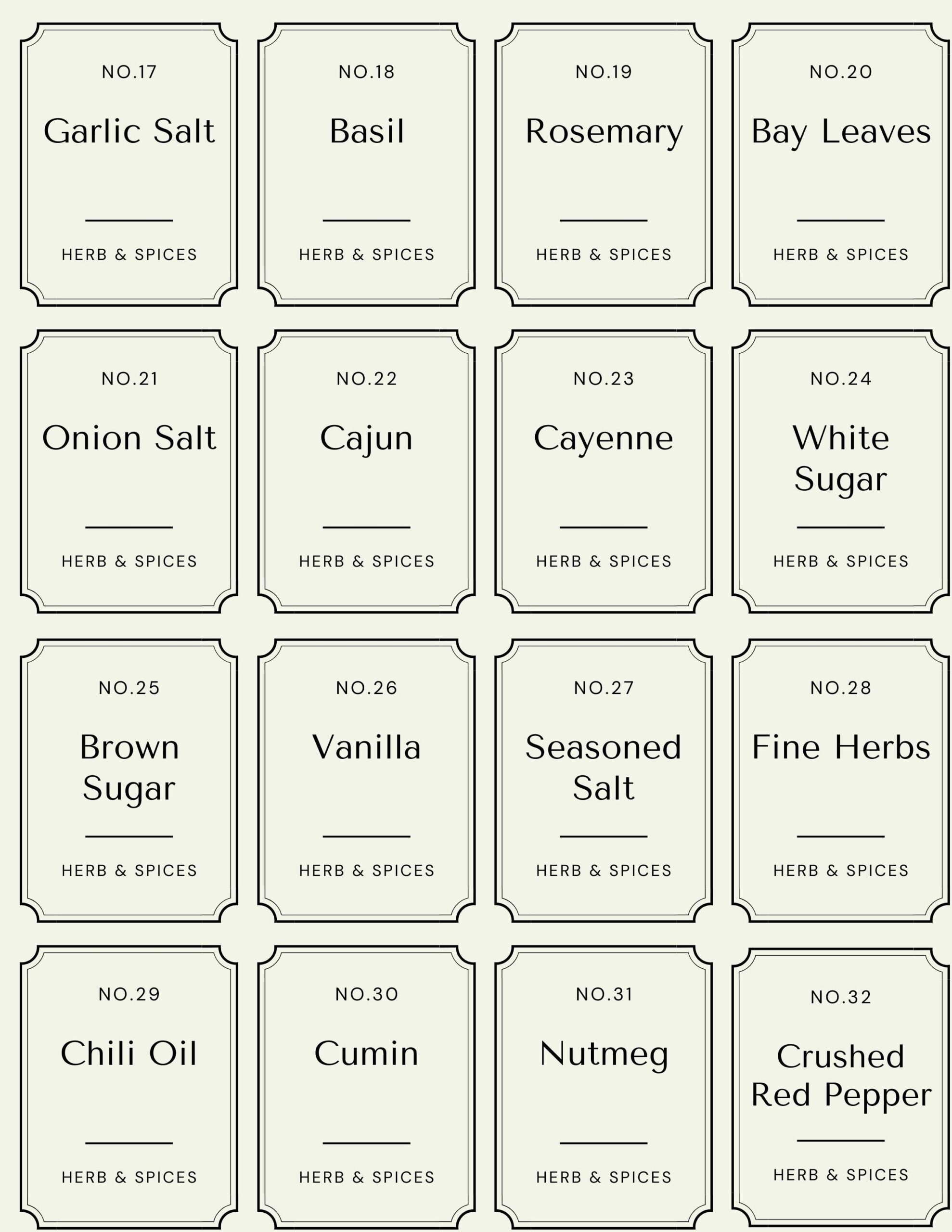 So why wait? Download your favorite free printable spice labels today and transform your kitchen into a well-organized and stylish space. With just a few clicks, you can add a pop of personality to your spice collection and elevate your cooking experience. Happy labeling!