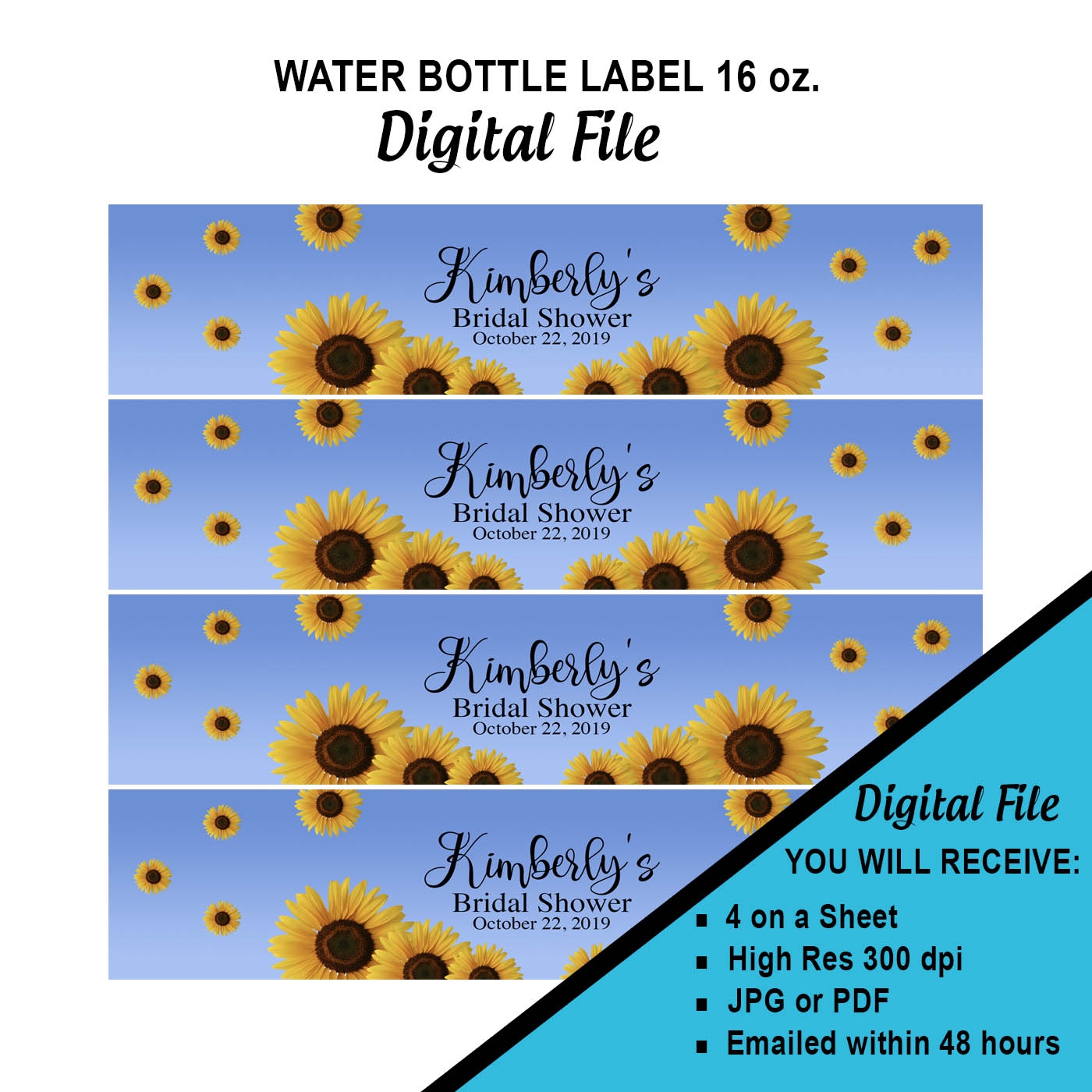 Printable OR Printed Sunflower Wedding Water Bottle Labels