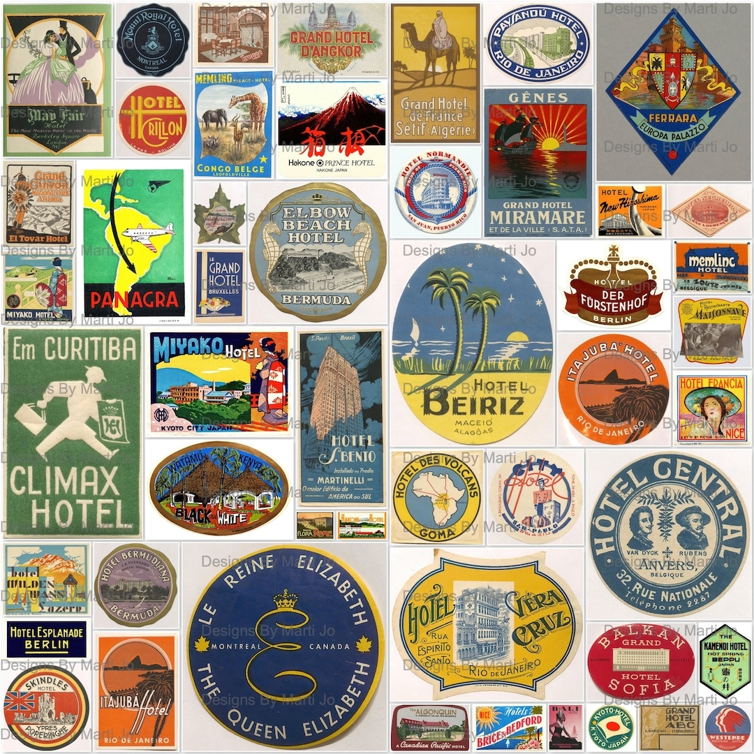 Printable Vintage Luggage Labels Kit 2 50 Vintage Hotel Labels Suitcase Clipart JPG Digital Download Commercial Use OK VL13 Etsy