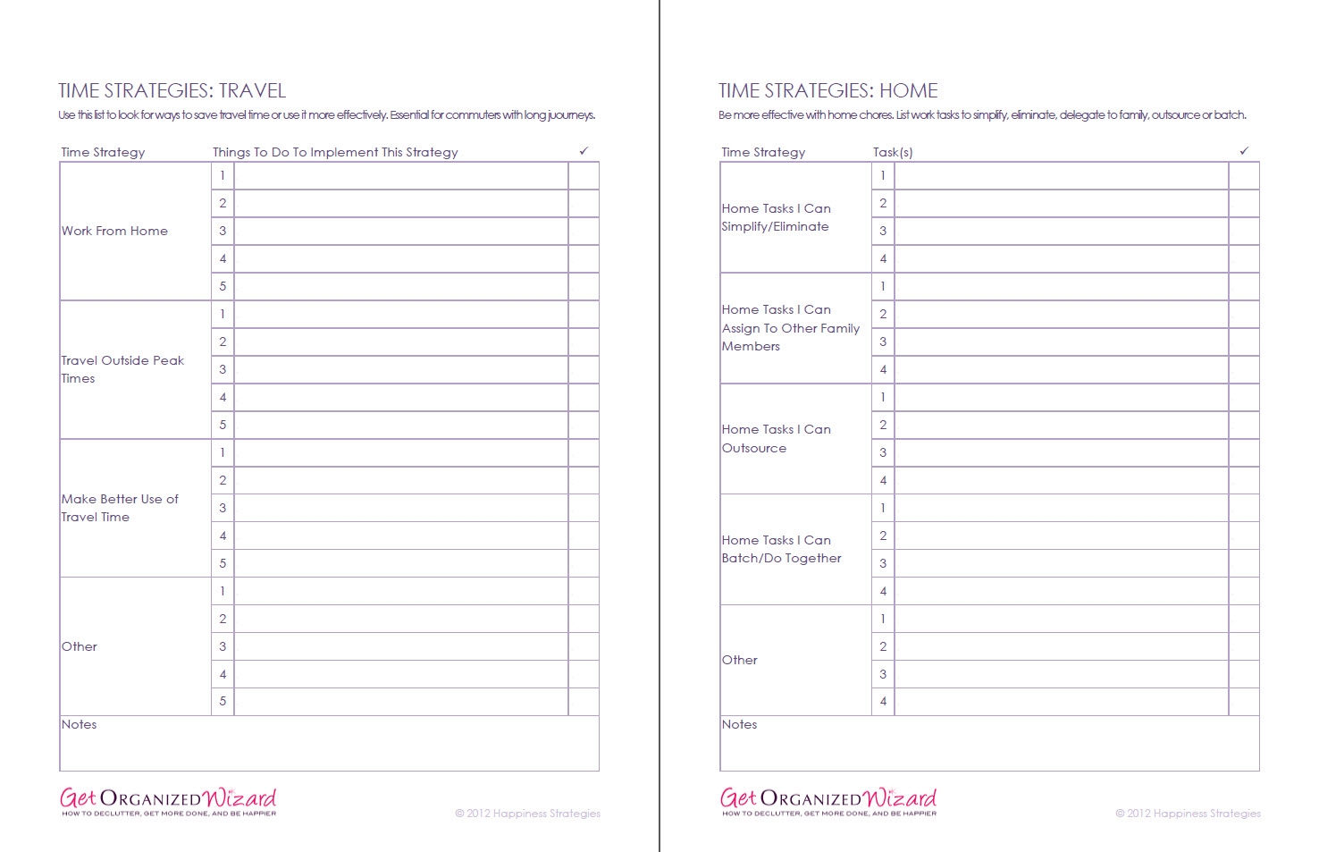 free time management printables