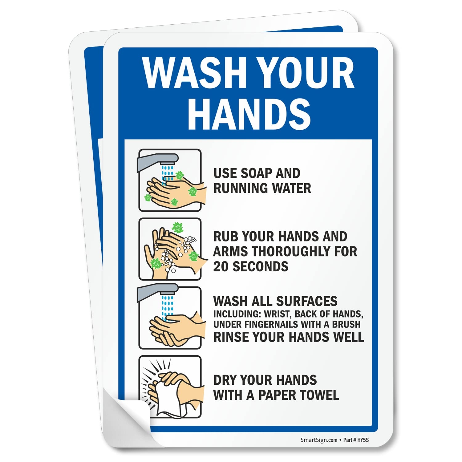 SmartSign Wash Your Hands Hand Washing Instruction Labels 7
