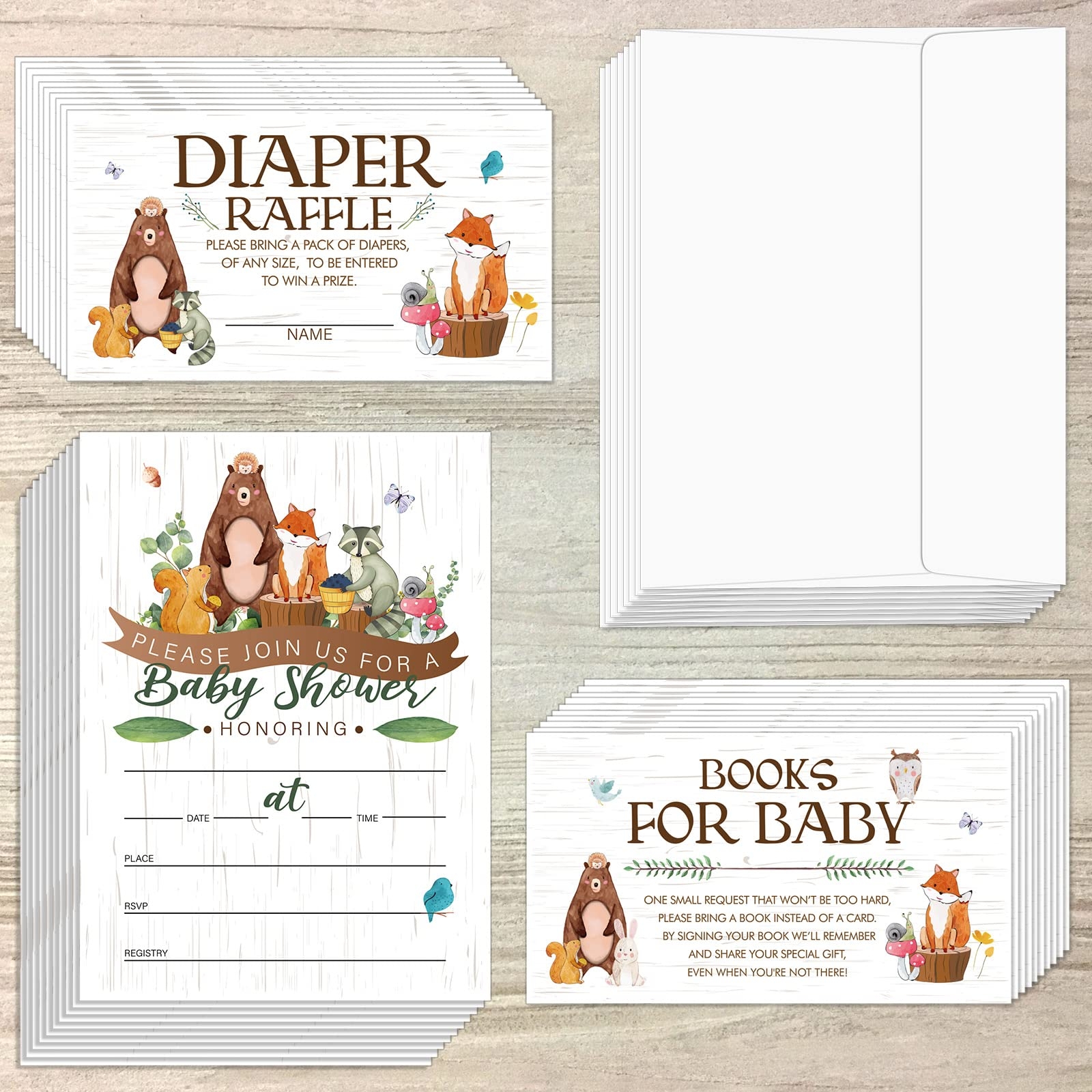 Amazon Containlol Sets Of 28 Woodland Animal Baby Shower Invitations Diaper Raffle Tickets Baby Shower Book Request Cards With Envelopes For Boy Girl Woodland Creatures Forest Welcome Theme Party Supplies Baby