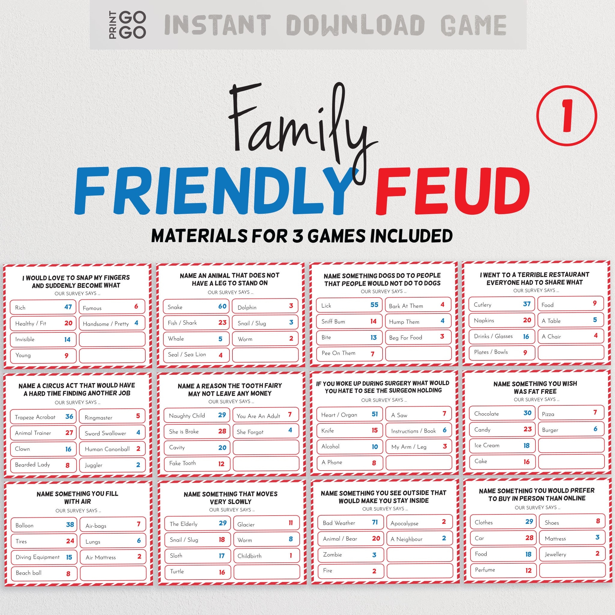 Family Friendly Feud Printable Party Game Downloadable Family