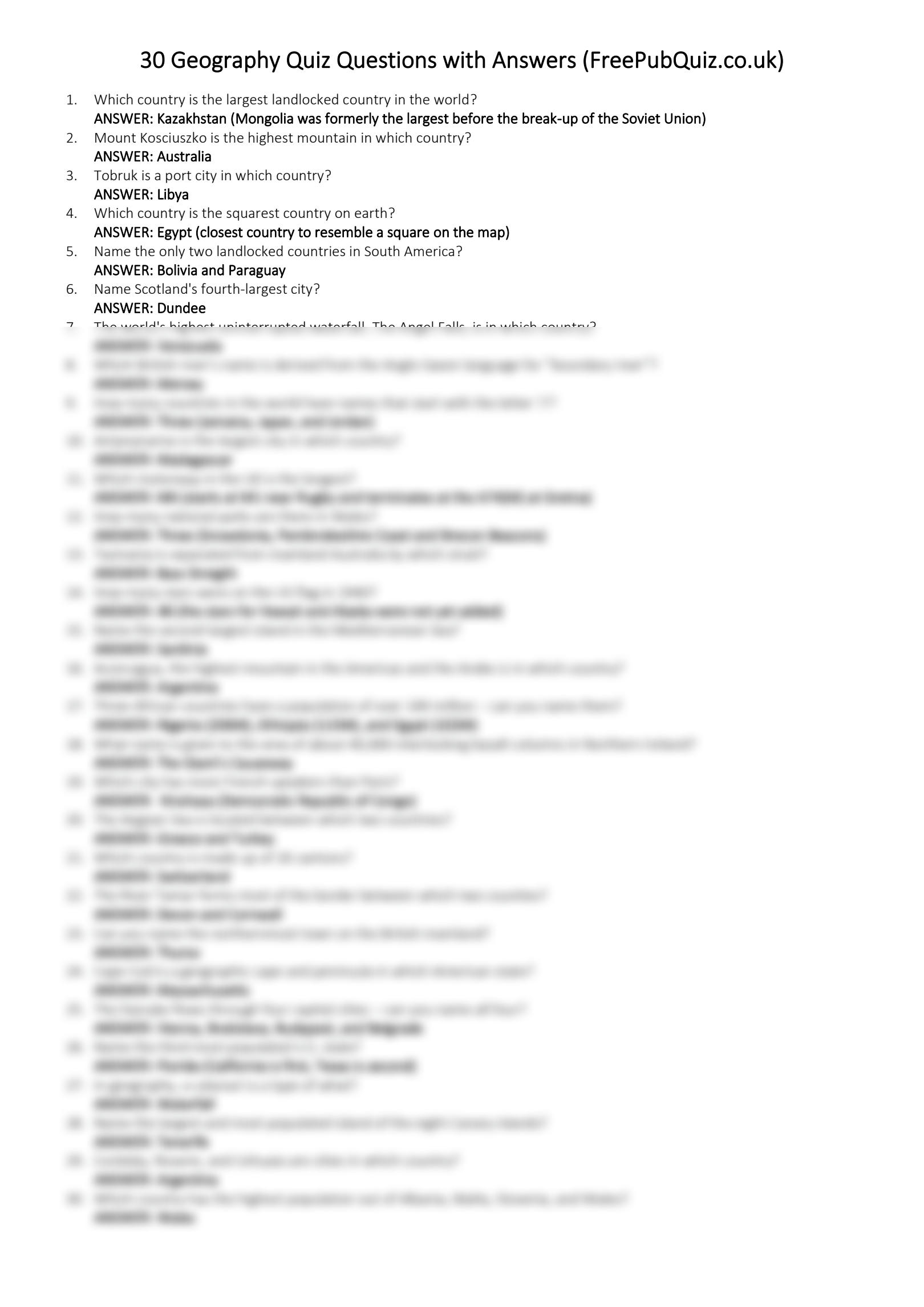 SOLUTION Printable Geography Quiz Questions With Answers Studypool Worksheets Library