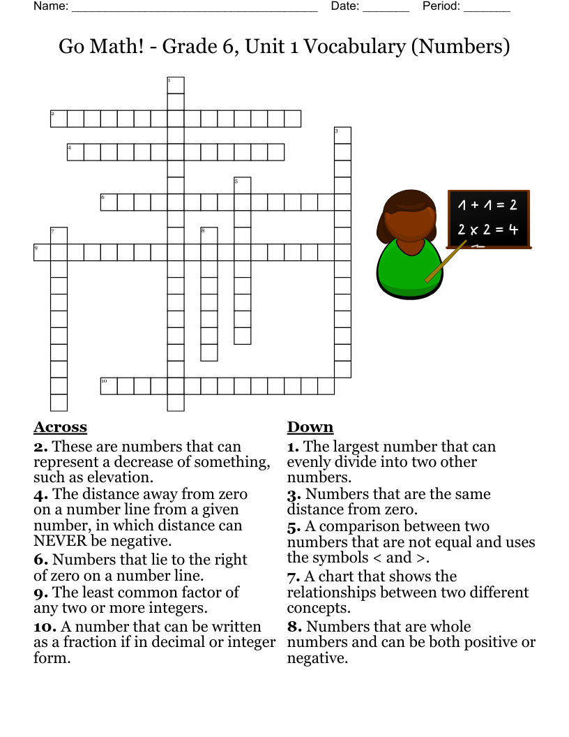 Go Math Grade 6 Unit 1 Vocabulary Numbers Crossword WordMint