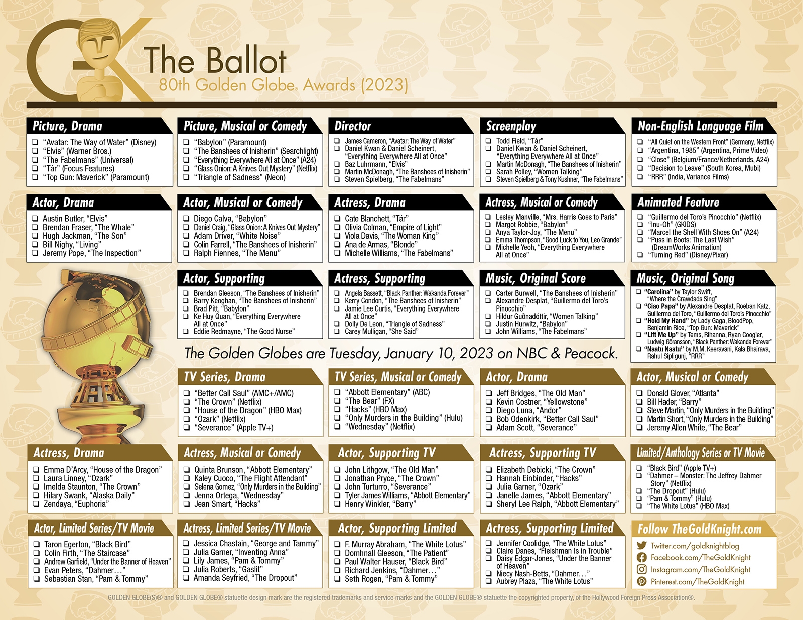 2023 Golden Globe Awards Printable Ballot The Gold Knight Latest Academy Awards News And Insight