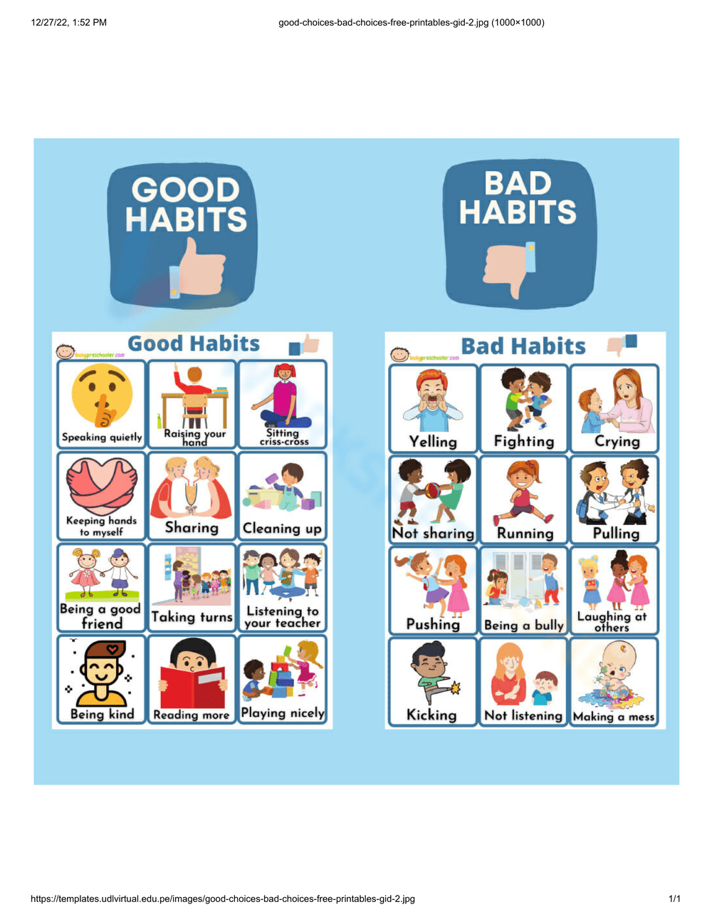 Good Choices vs. Bad Choices Printables