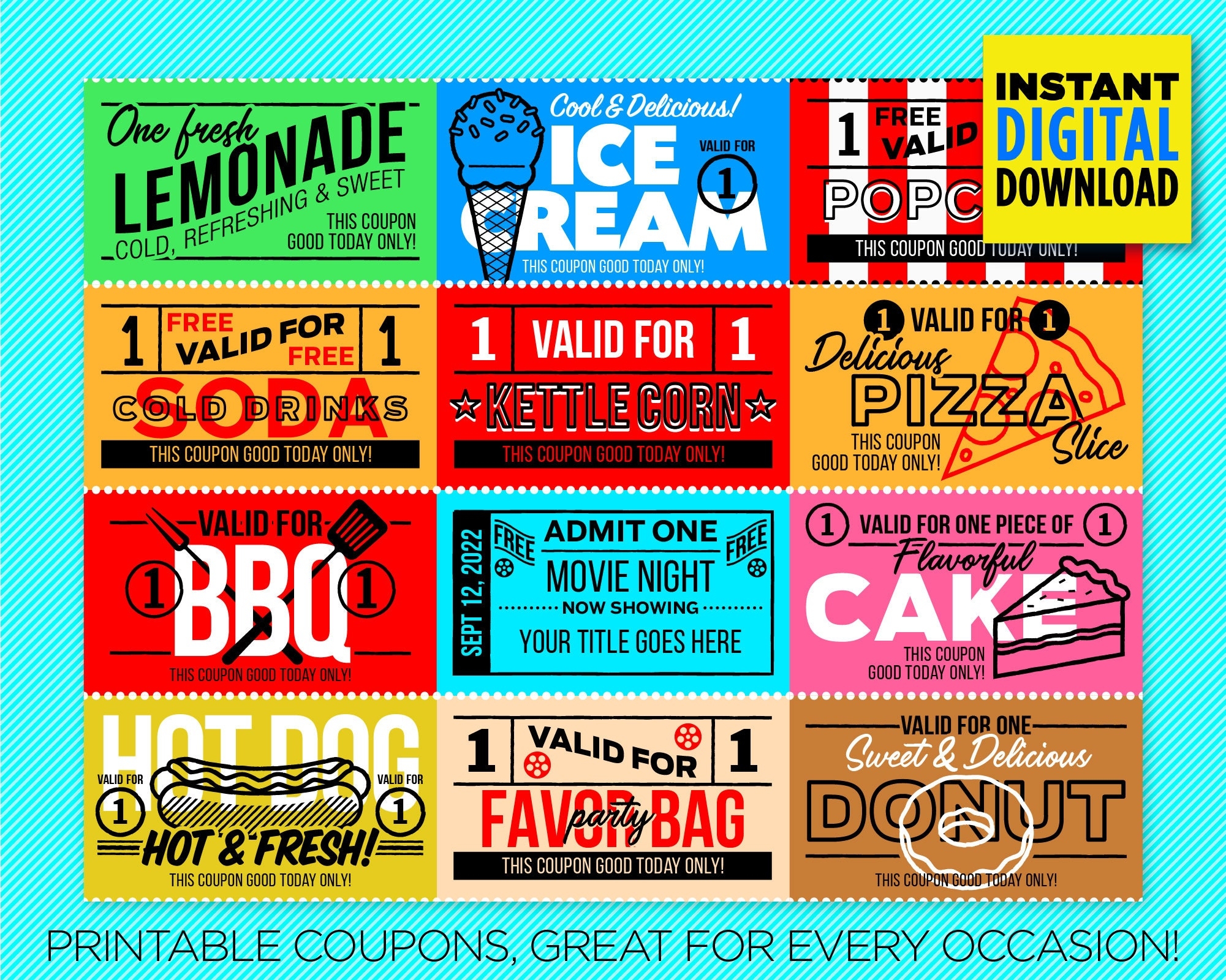 All occasion Printable Coupons Great For Any Family Reunion Birthday Party Pool Party Movie Night Party Etc EASY TO EDIT And Print Etsy
