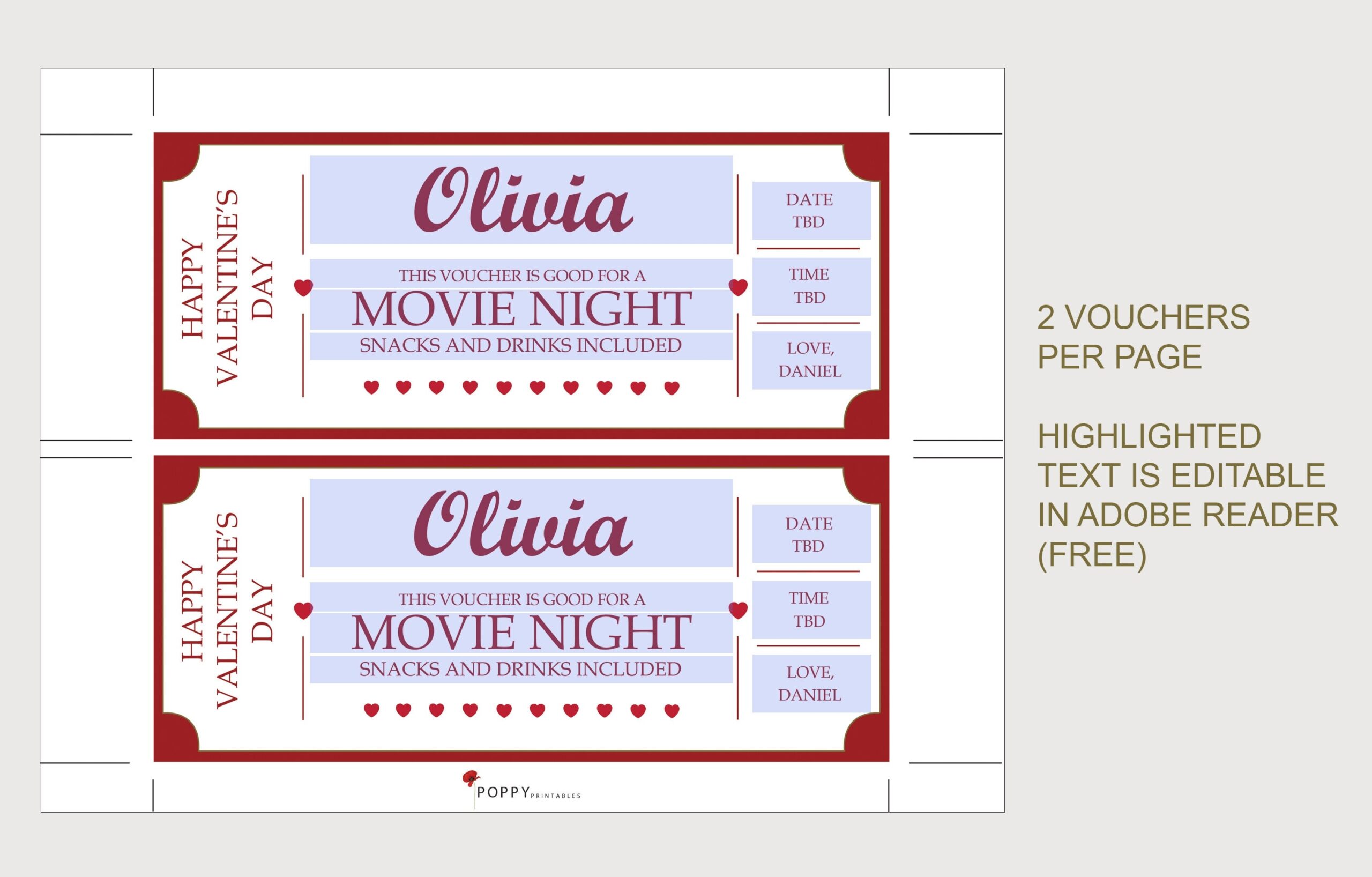 Movie Night Coupon Voucher Valentine s Day INSTANT DOWNLOAD EDITABLE Text Printable Personalized Ticket Certificate Last Minute Etsy