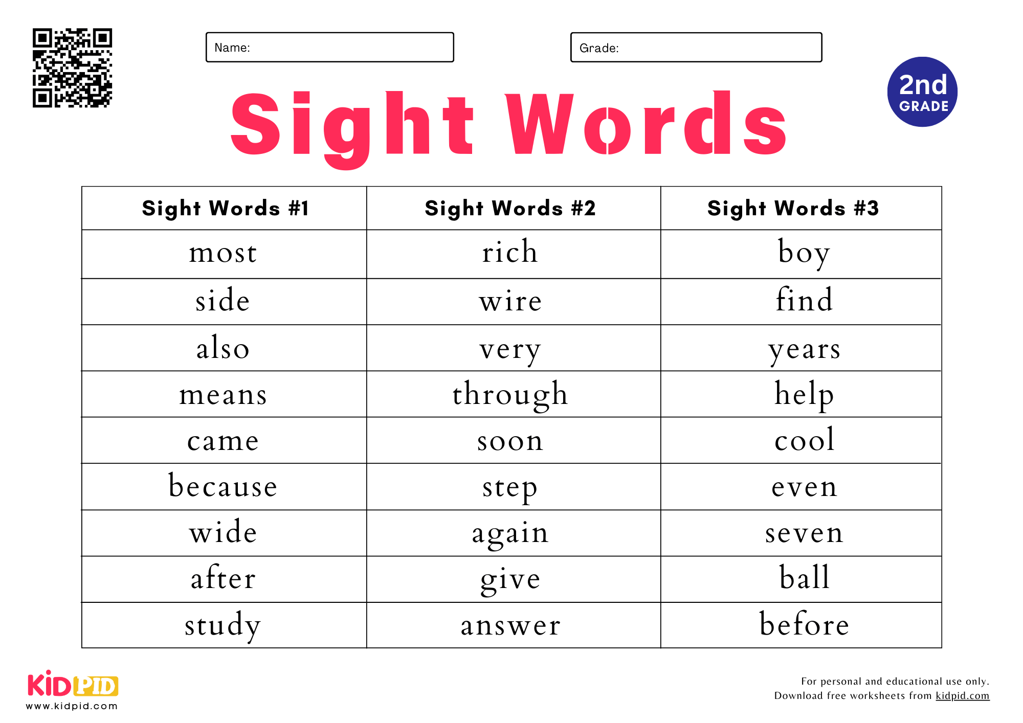 Sight Words Spelling List Worksheet For Grade 2 Kidpid