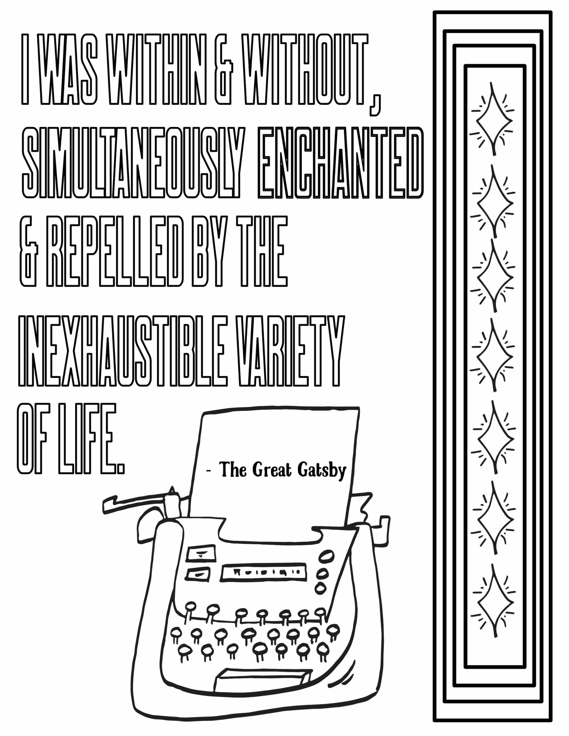 Don’t forget to check out our selection of Gatsby-inspired coloring pages. Whether you’re a seasoned artist or just looking for a relaxing way to unwind, these printables are the perfect way to channel your inner creativity while immersing yourself in the world of Jay Gatsby and Daisy Buchanan.