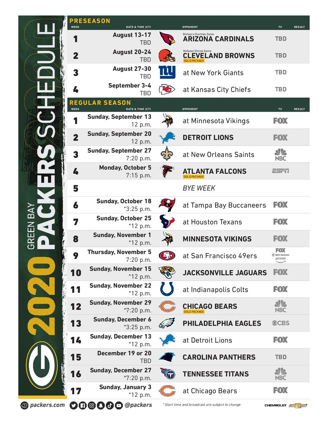 From division rivals to primetime matchups, this schedule has everything you need to plan your football-watching weekends. So grab your cheesehead, get your snacks ready, and enjoy cheering on the Packers all season long!