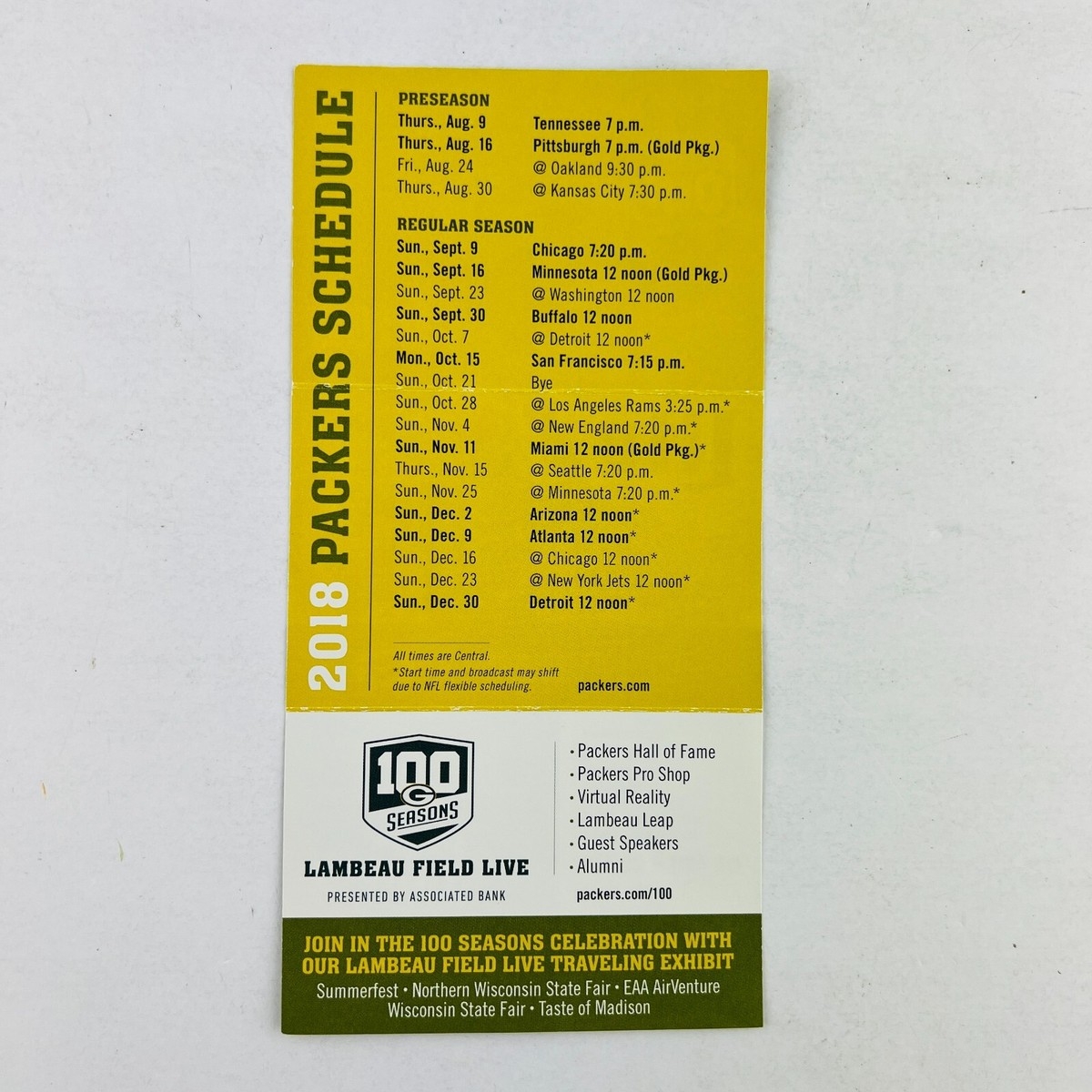 Green Bay Packers 2018 Wallet Schedule