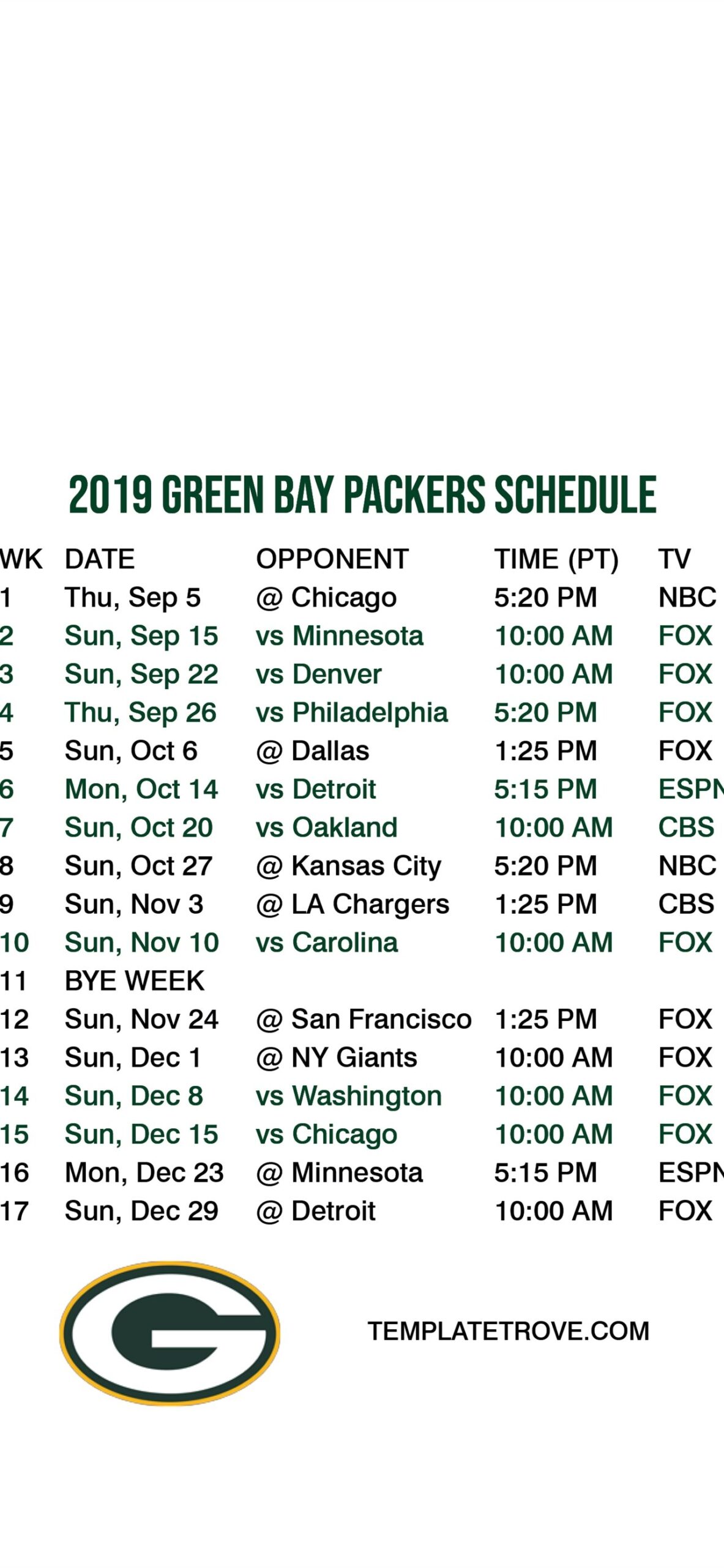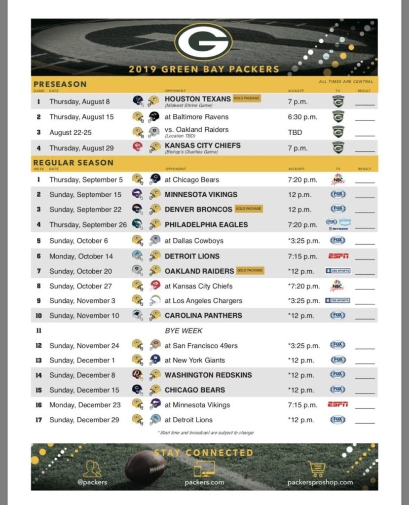 The Green Bay Packers printable schedule for the 2019-2020 season is a must-have for any fan. Whether you’re planning a game day party or just want to keep track of when your favorite team is playing, this schedule has got you covered.