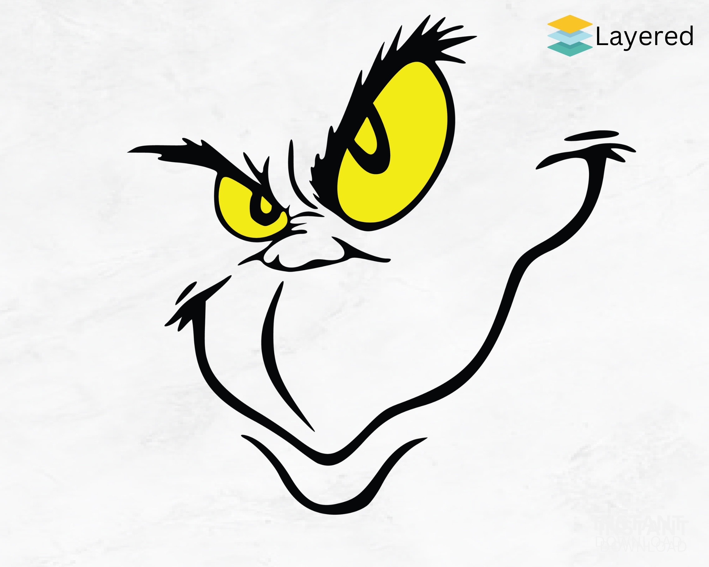 Grinch Face With Yellow Eyes SVG Grinch Face SVG JPG Files