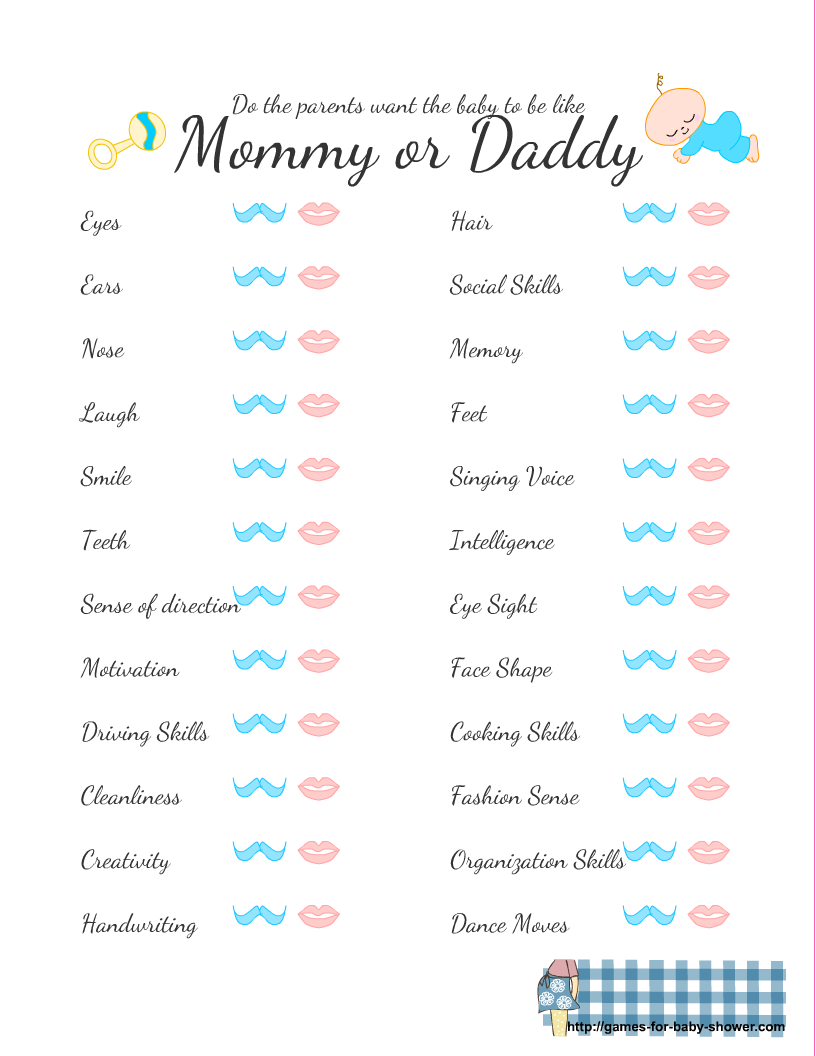 Free Printable Do The Parents Want The Baby To Look Like Mommy Or Daddy Game