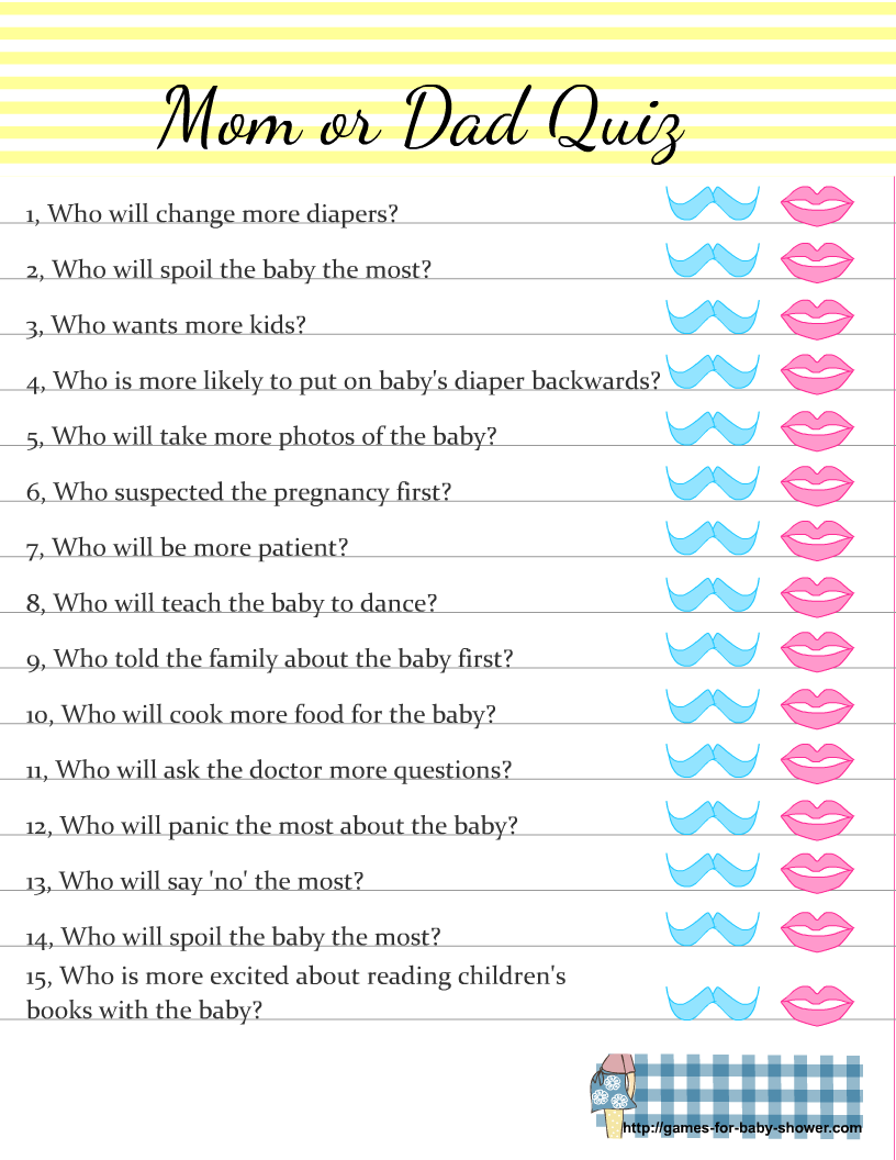 Mom Or Dad Quiz Free Printable For Baby Shower