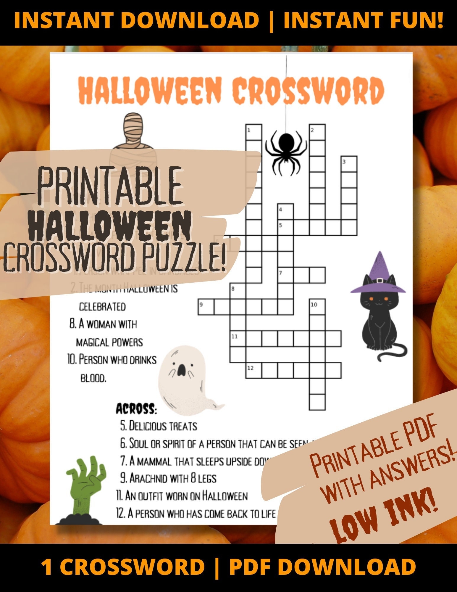 Halloween Printable CROSSWORD PUZZLE with Answer Key Etsy Australia