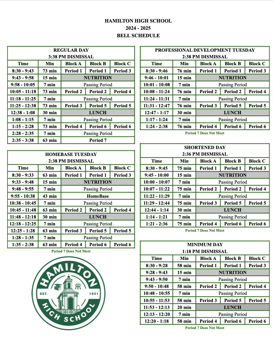 Bell Schedules 24 25 Bell Schedule Alexander Hamilton Senior