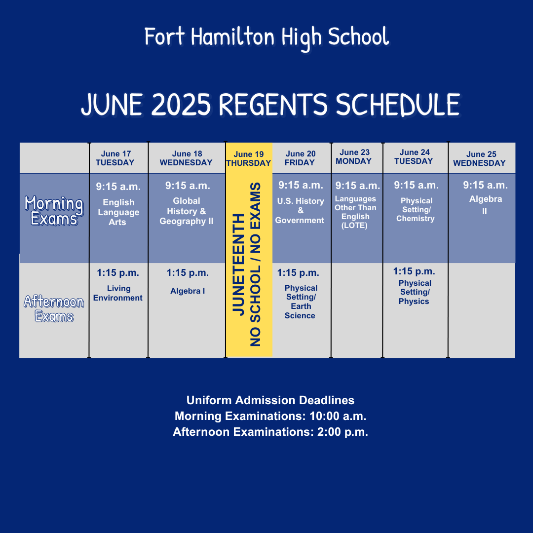 Regents Exam Schedule For June 2025 Fort Hamilton High School