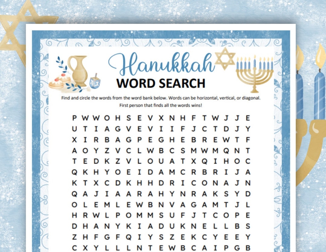 Hanukkah Word Search Puzzle Printable Chanukah Games For Kids Adults And Seniors Activities For Hanukkah Game Bundle Etsy