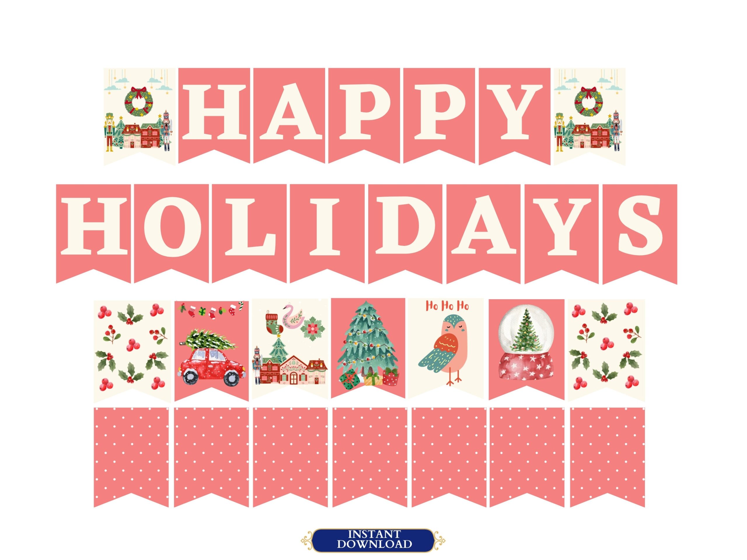 Happy Holidays Banner Printable Holiday Banner Happy Holiday Banner Printable Holiday Bunting Christmas Banner Printable PDF Etsy