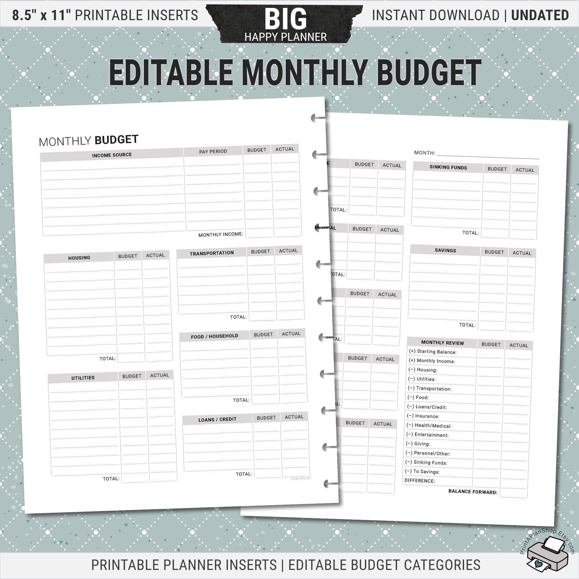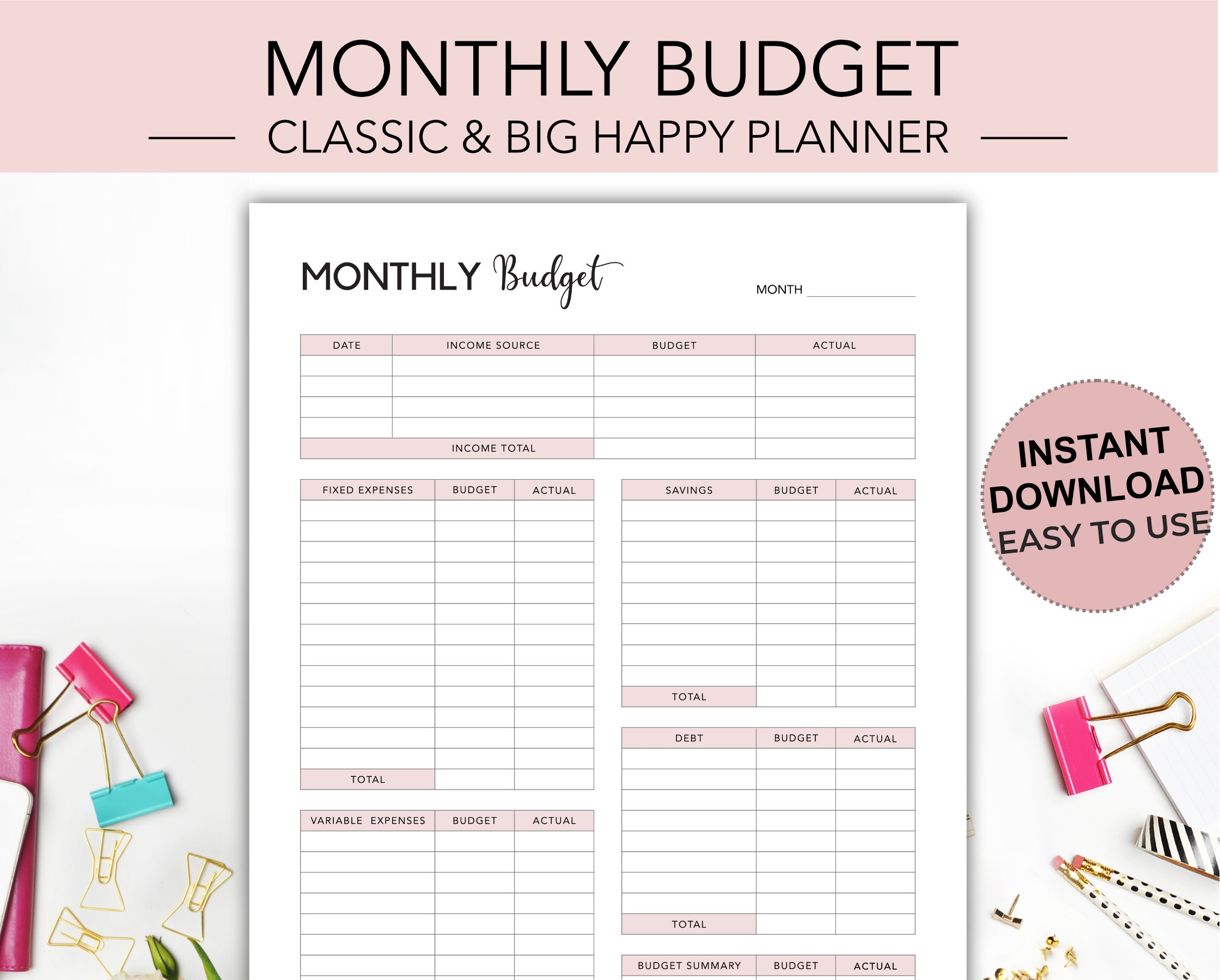 Happy Planner Budget Printable Monthly Budget Happy Planner Big