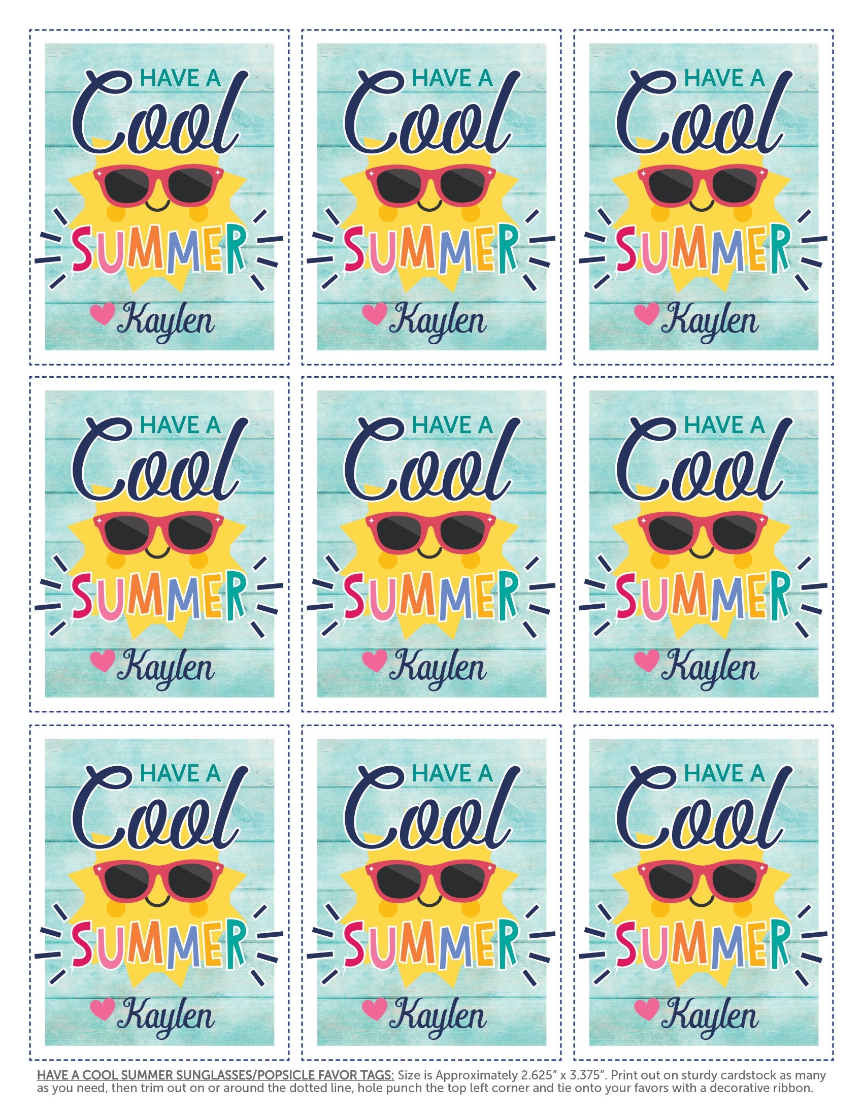 Digital Have A Cool Summer Tags Summer Favor Tags For School