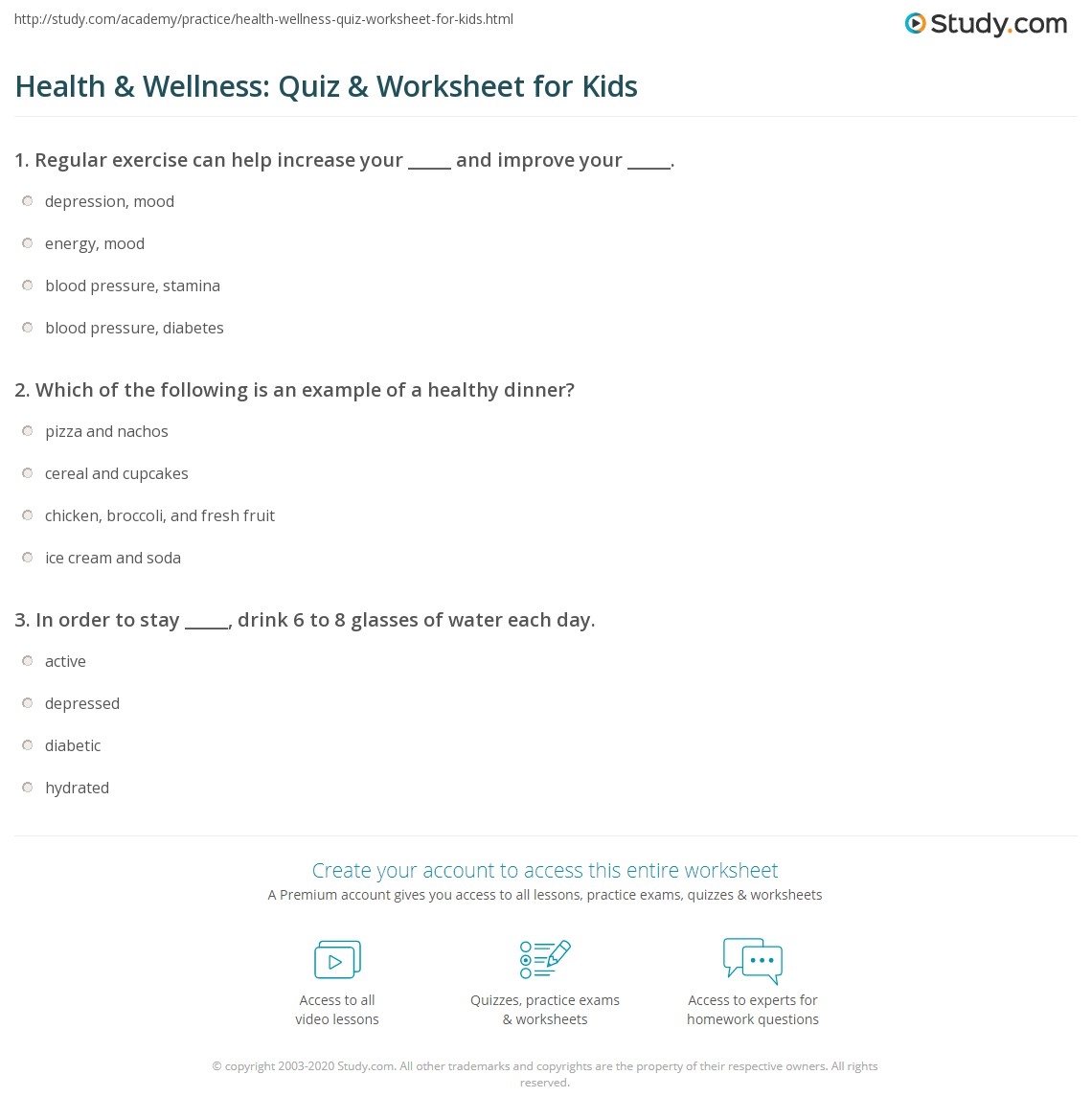 Health U0026 Wellness Quiz U0026 Worksheet For Kids Study Worksheets Library