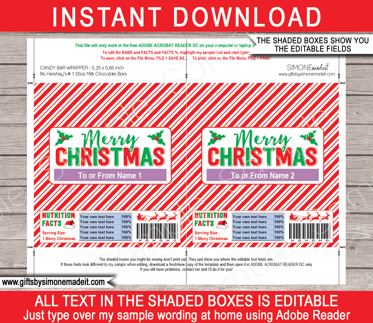 Hersheys Christmas Wrapper Template Personalized Candy Bar Labels