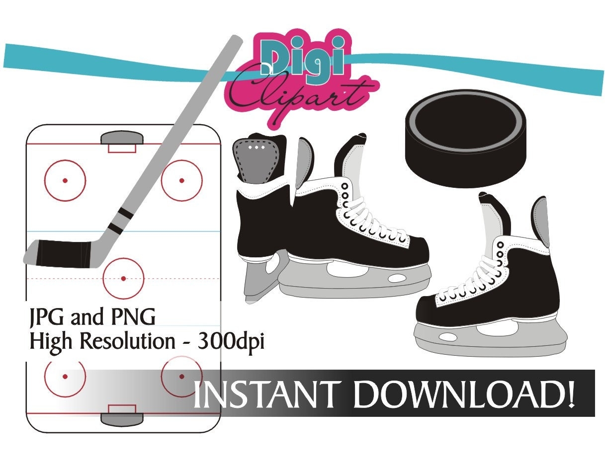 Hockey Clipart Ice Skates Puck Stick Hockey Rink NHL Sports Clip Art INSTANT DOWNLOAD Etsy