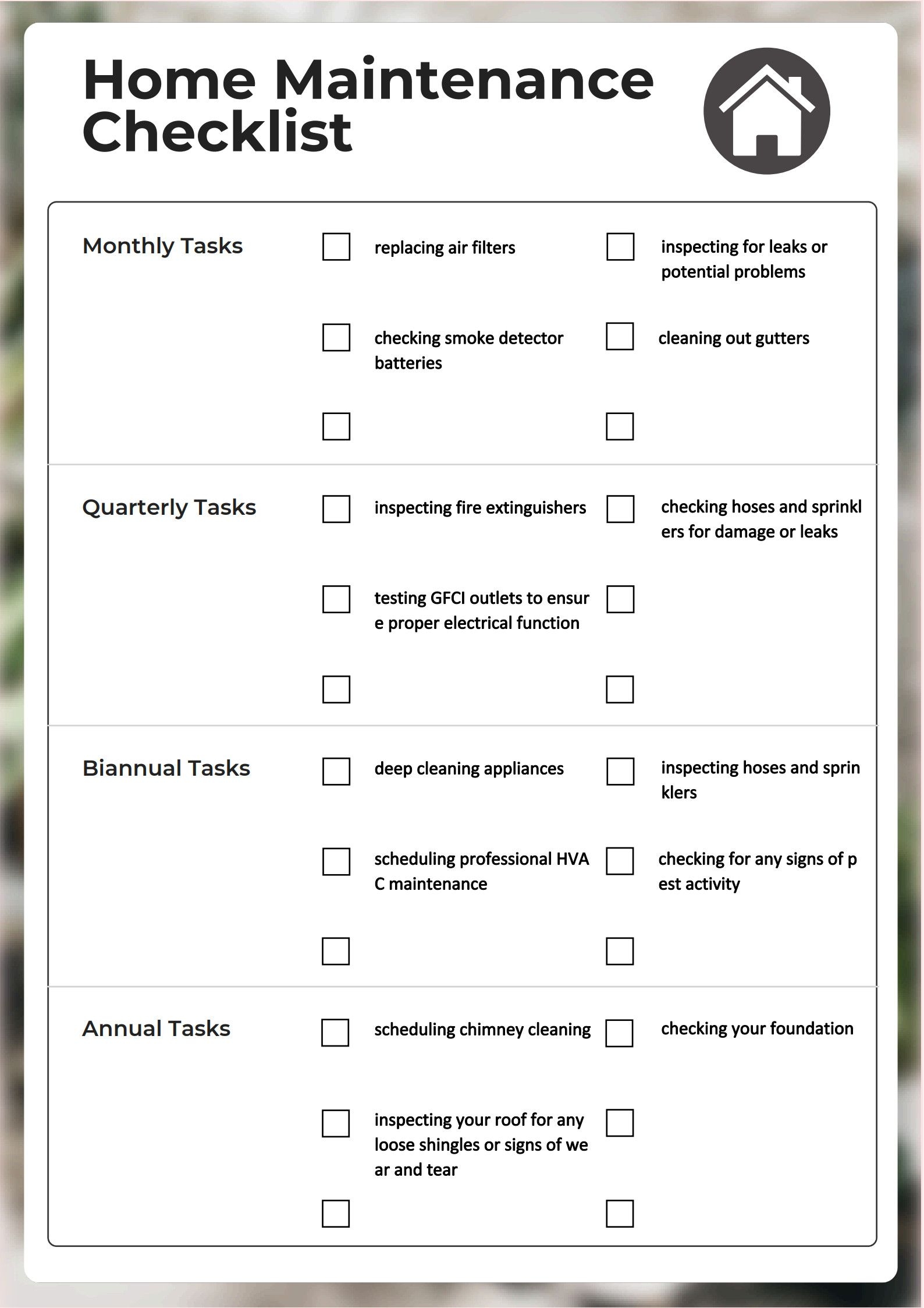 Home Maintenance Checklist 15 Free PDF Printables Printablee