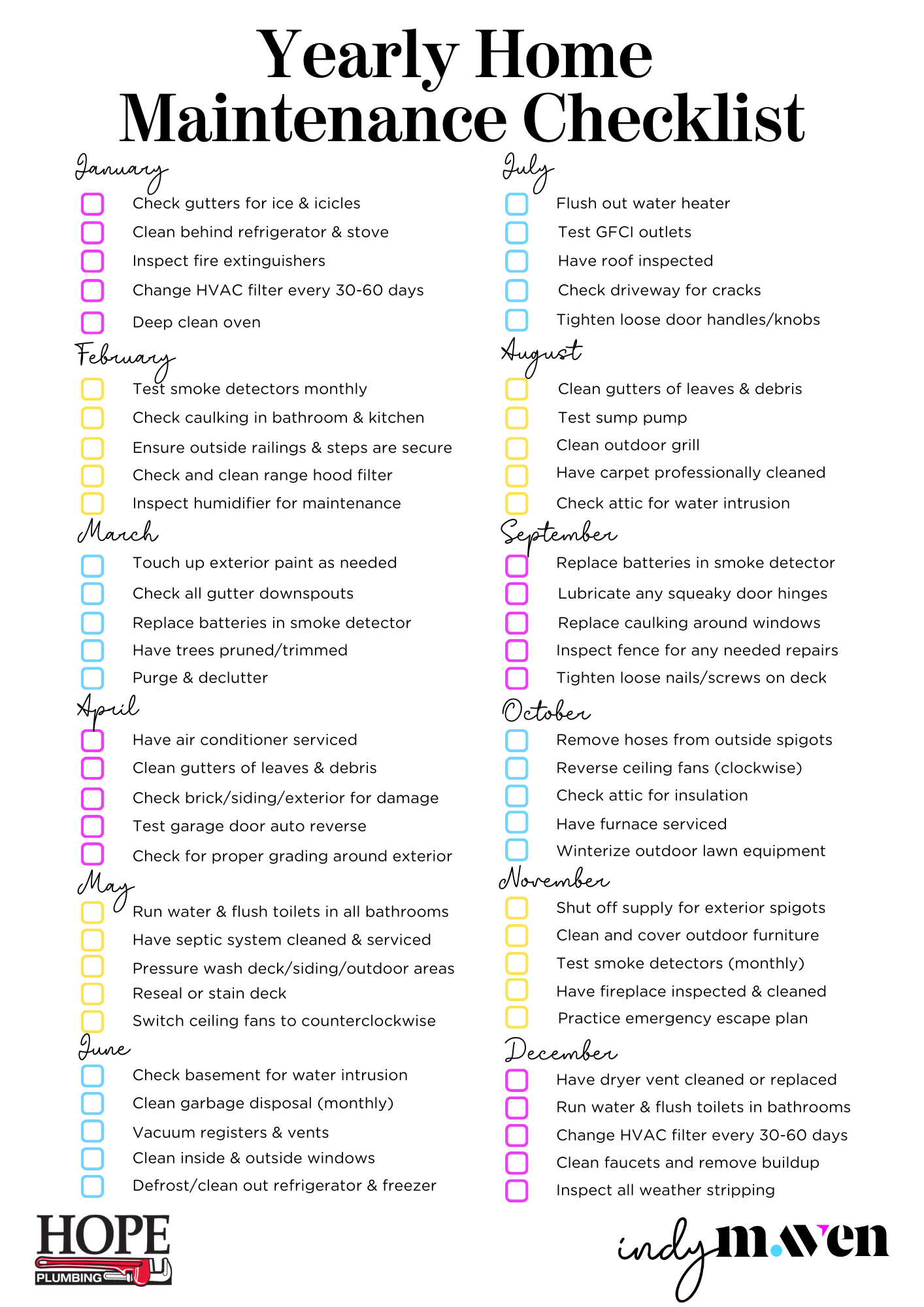 Maintenance Checklist Indy Maven s Yearly Home Maintenance Checklist