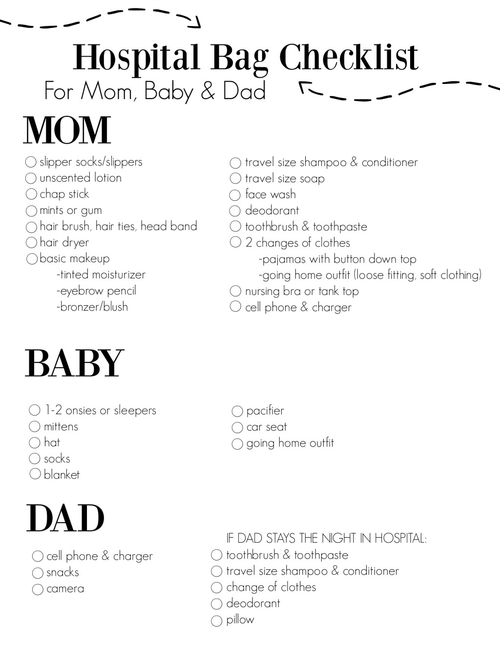 Hospital Bag Checklist Printable