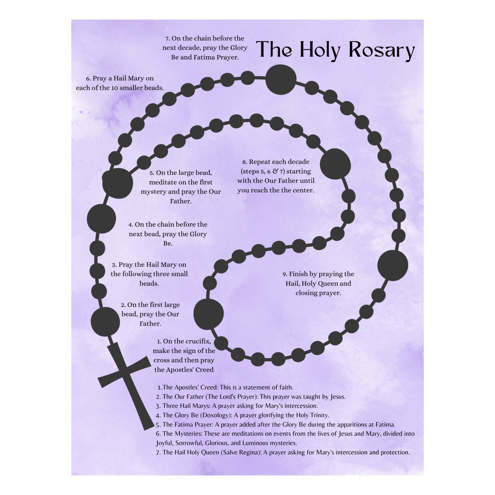 Rosary Prayer Art Print Set Catholic Marian Devotion digital Download Etsy
