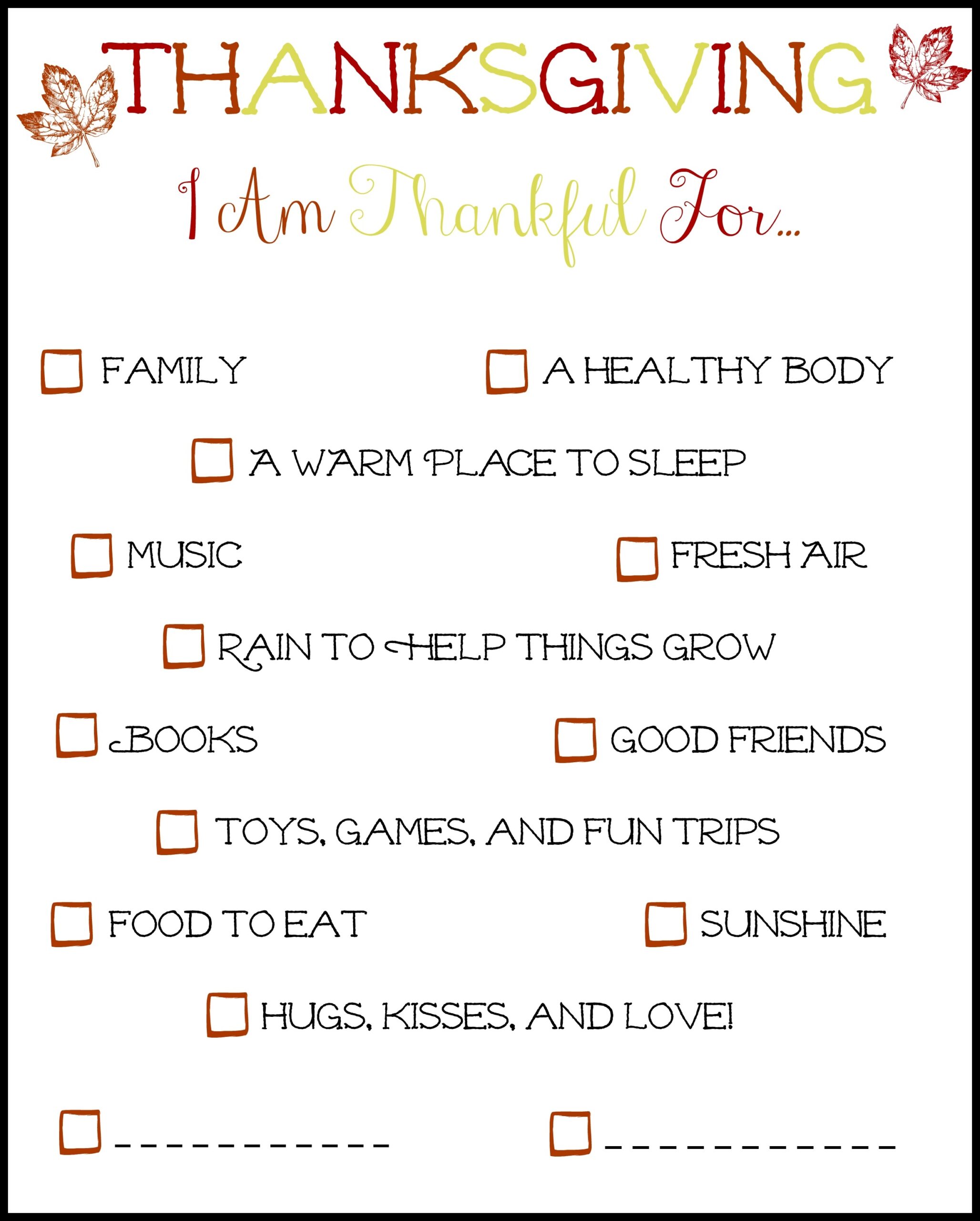 I Am Thankful For Printable