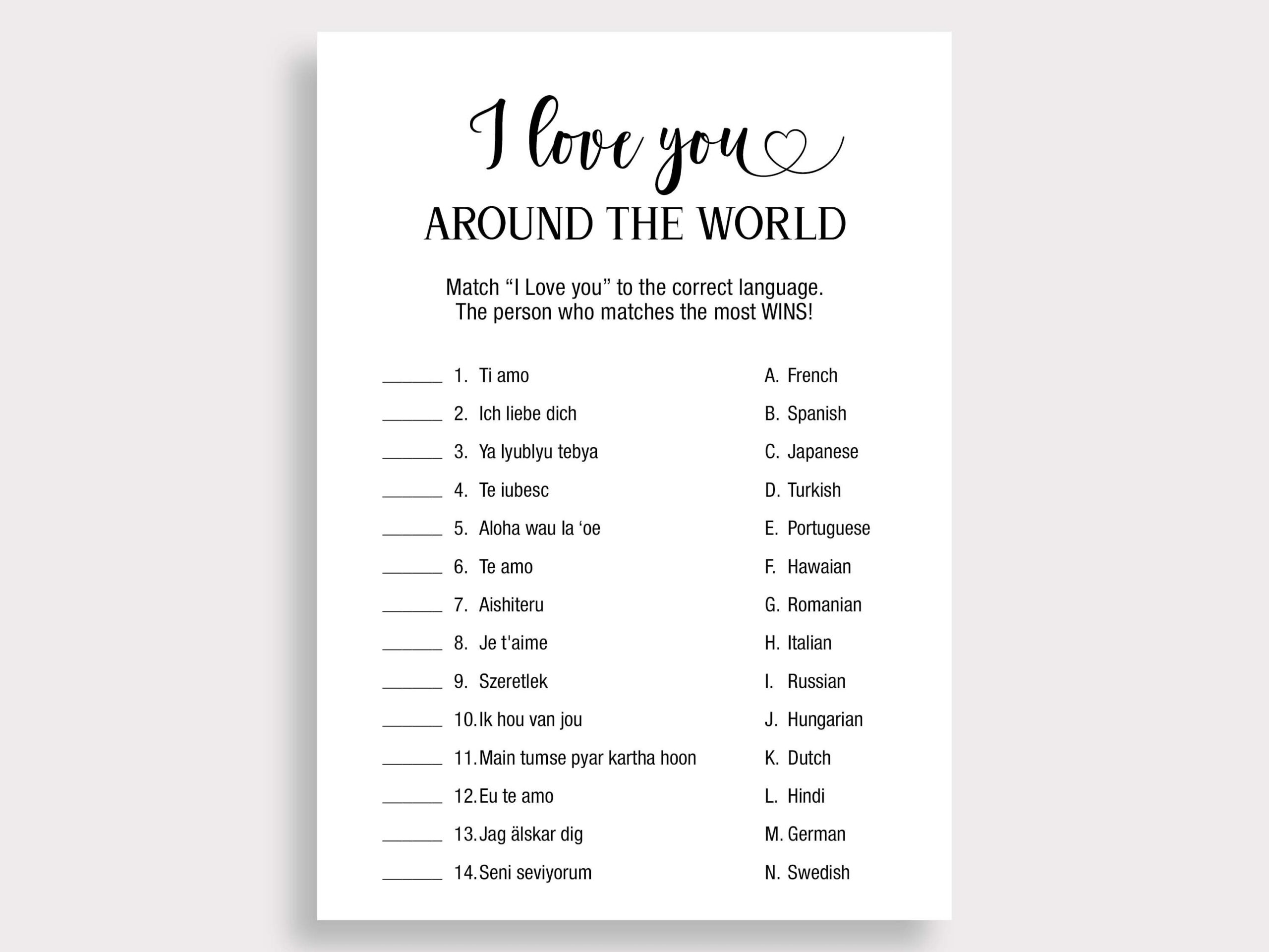 I Love You Around The World Bridal Shower Game Minimalist Couples Shower Game Simple Travel Bridal Shower Games Instant Download W18 Etsy