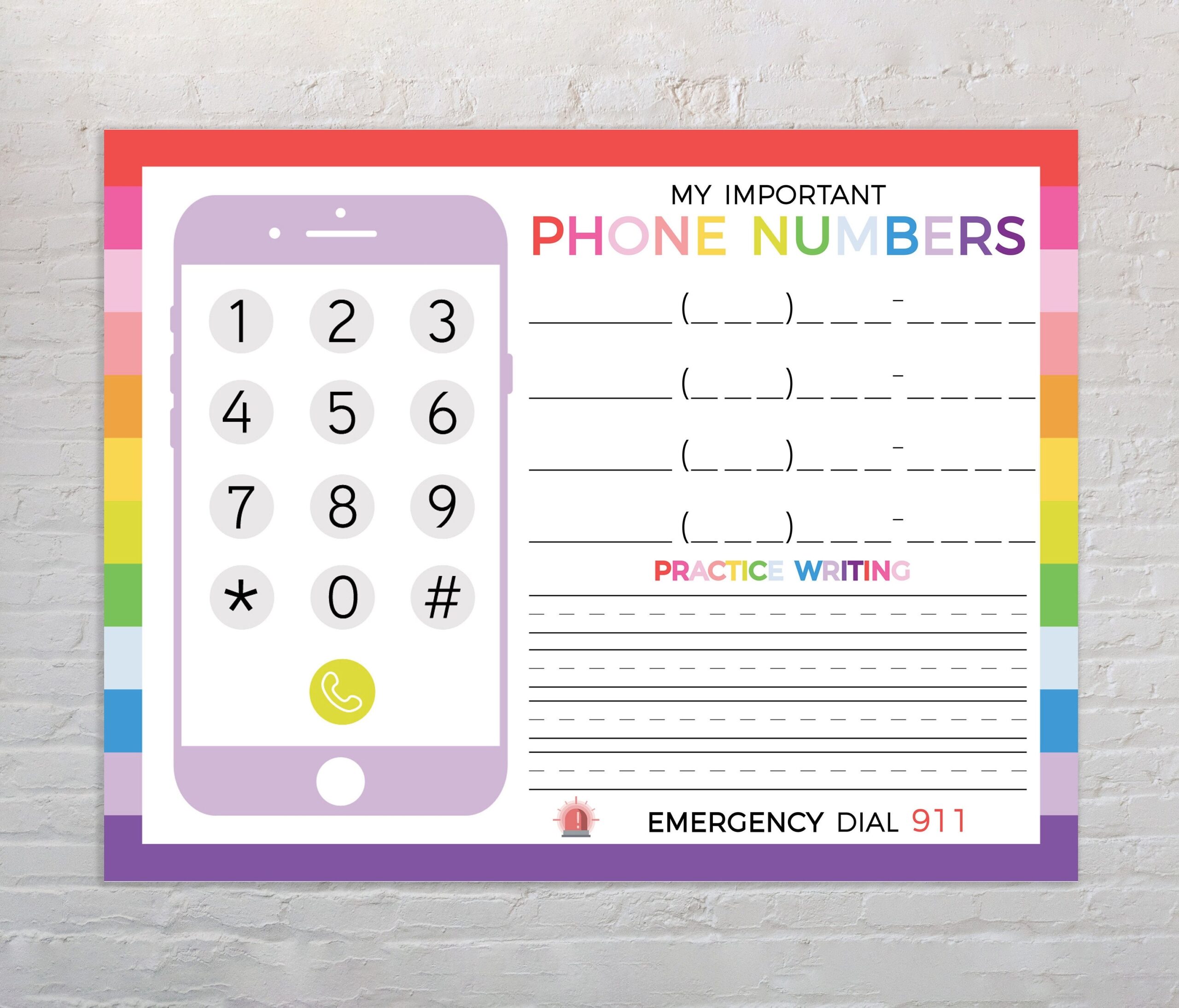 Phone Number Practice Kids Learning Tool Educational Worksheet Printable Phone Chart Homeschool Printable Phone Number Drill Etsy UK