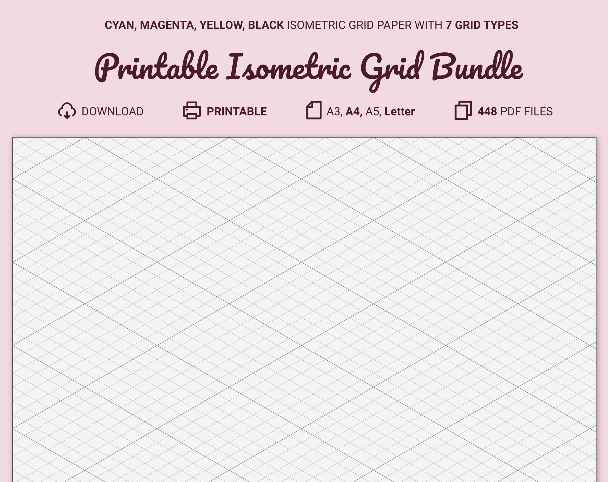 Printable Isometric Grid Paper Bundle A3 A4 A5 Letter Portrait U0026 Landscape Cyan Magenta Yellow Black Etsy