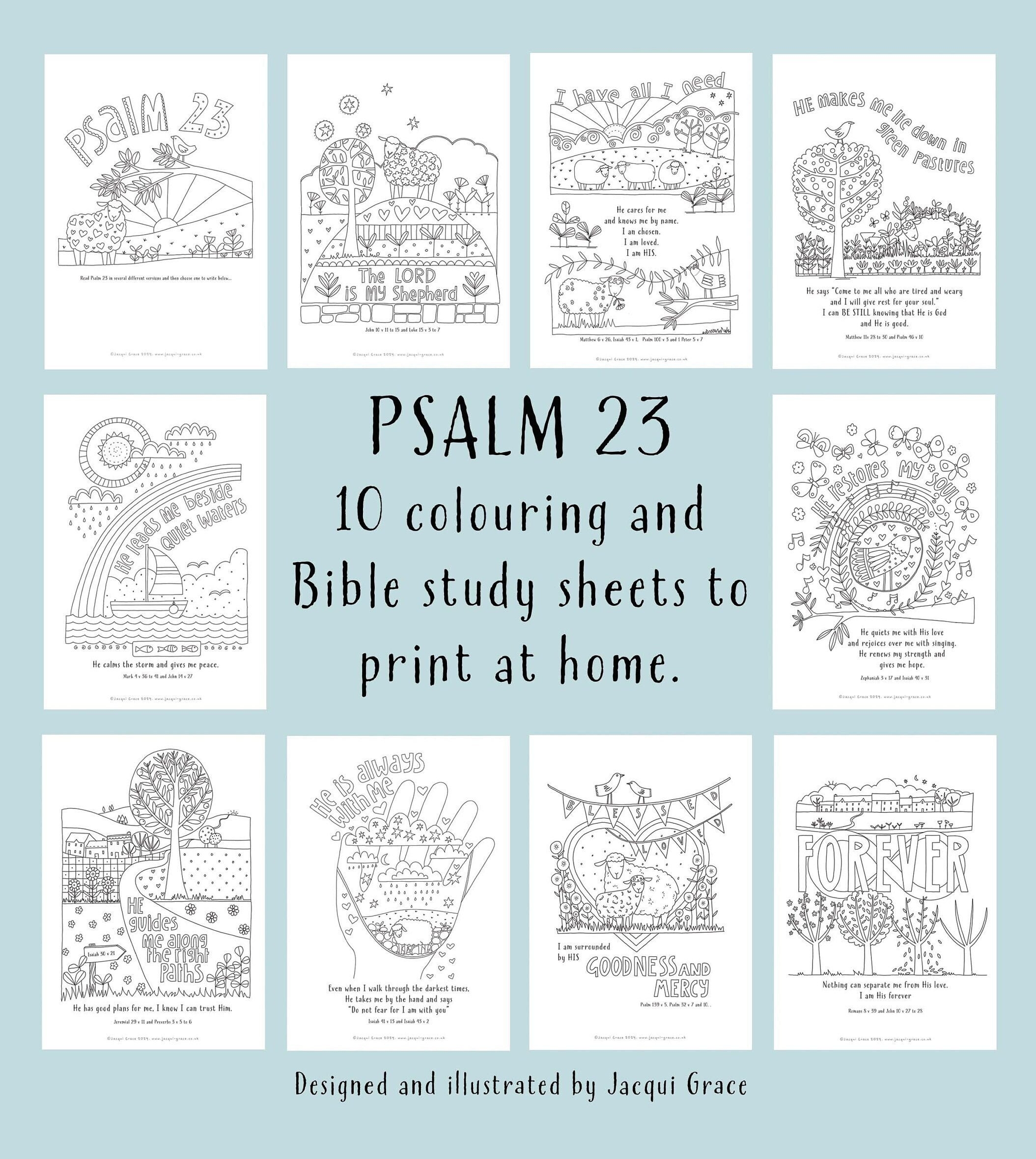 Digital Download Psalm 23 Colouring Pages 10 Black And White Illustrations By Jacqui Grace Etsy