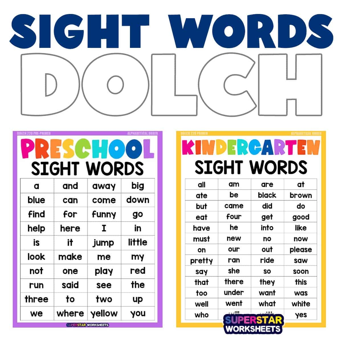 Dolch Sight Words Superstar Worksheets
