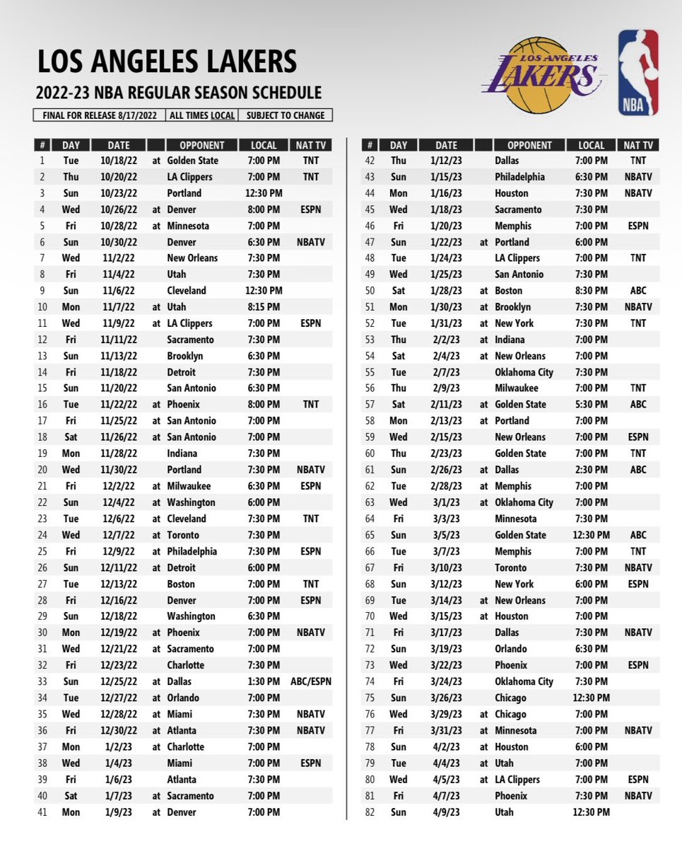 New Look Lakers Announce 2018 19 Regular Season Schedule LATF Worksheets Library