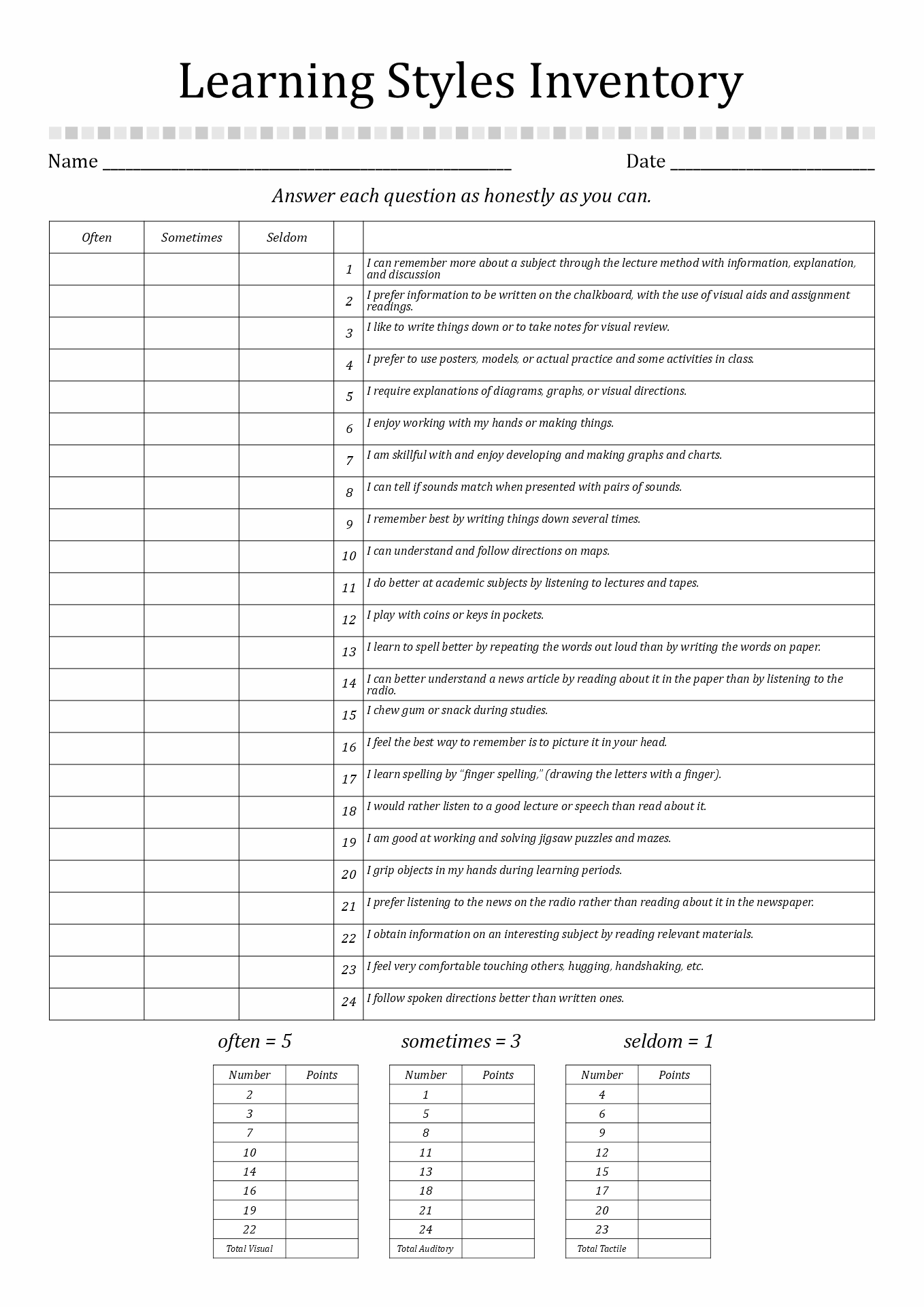 13 Learning Styles Inventory Worksheet Free PDF At Worksheeto