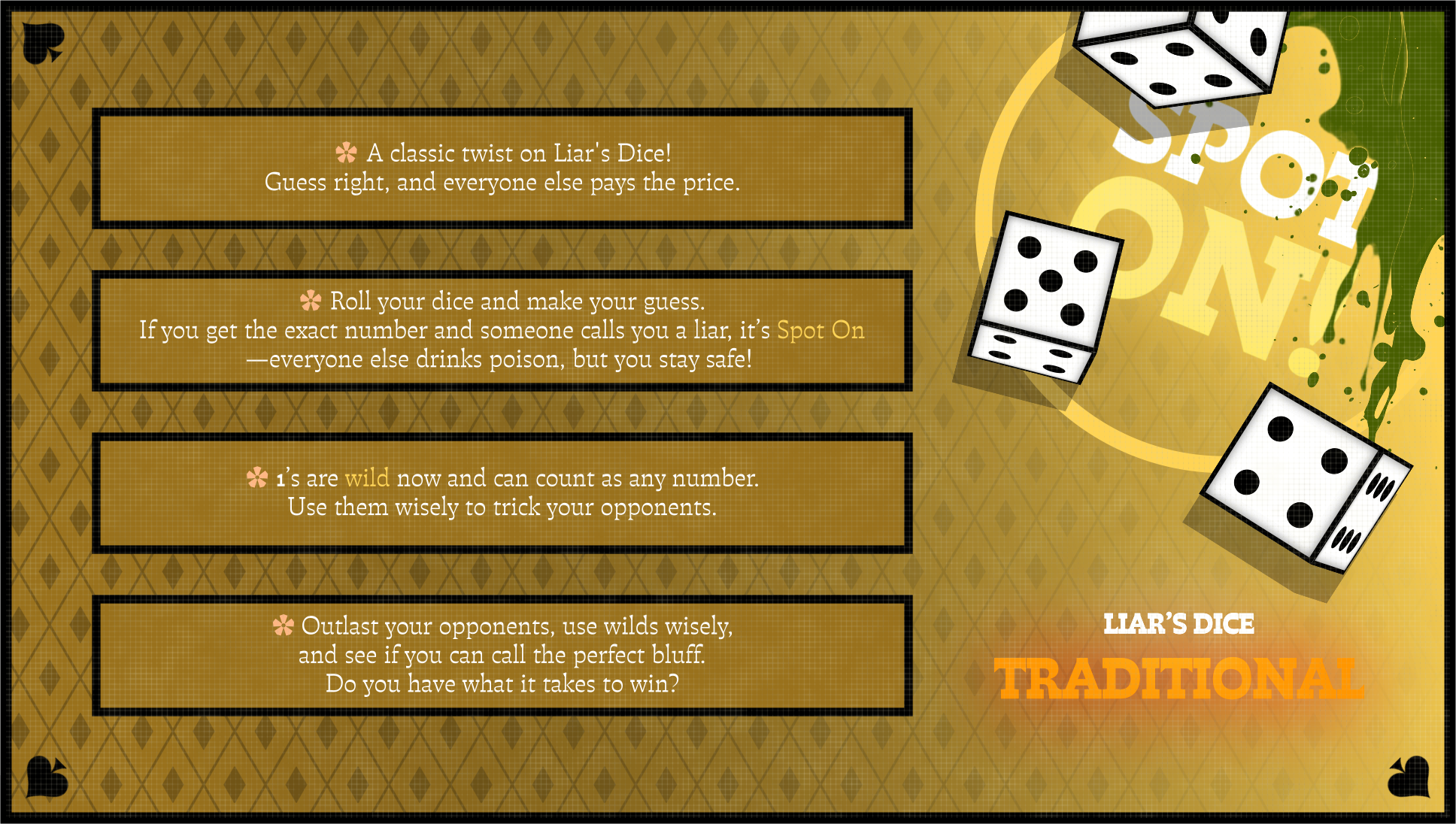 Remember, bluffing is key in Liar’s Dice! So, make sure to keep a straight face and try to read your opponents to come out on top. With these printable rules in hand, you’ll be ready to host your own Liar’s Dice tournament in no time. So gather your friends and family, roll those dice, and may the best bluffer win!