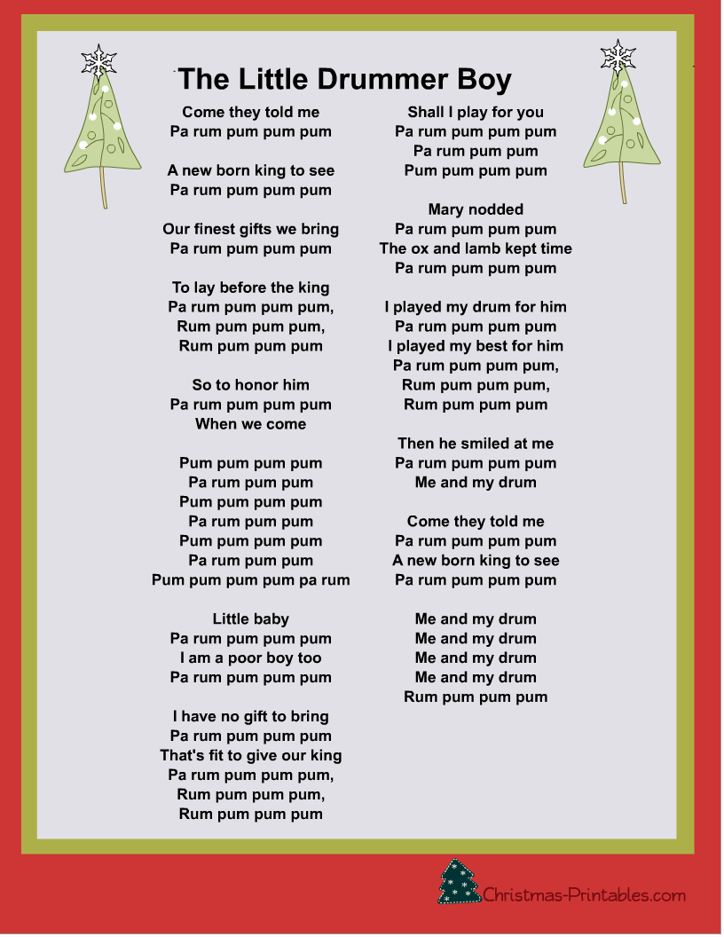 If you’re looking for a fun and festive activity this holiday season, why not try singing along to the classic Christmas song “Little Drummer Boy”? With printable lyrics, you can easily follow along and get into the holiday spirit!