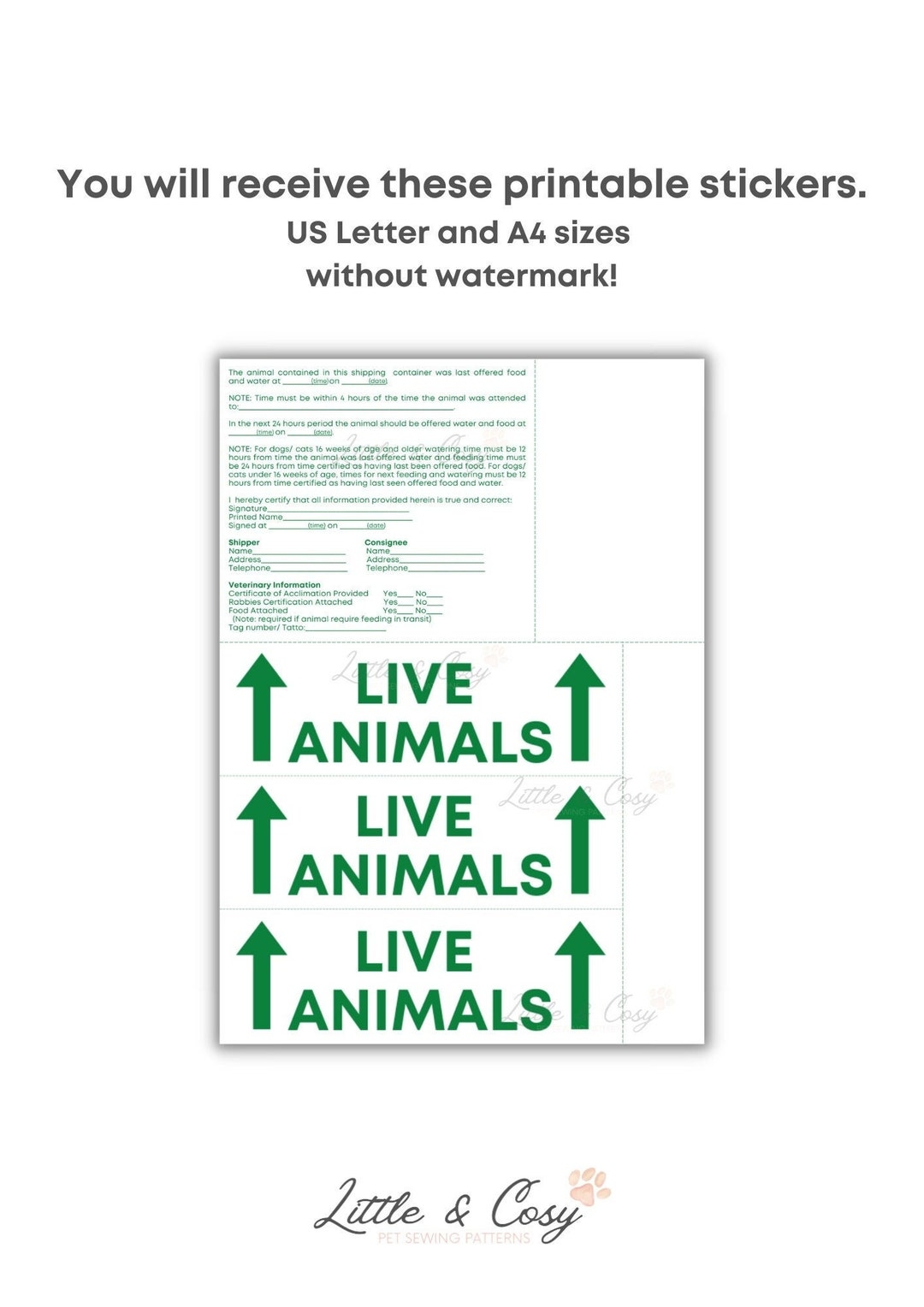 Live Animal Airline Stickers Pet Carrier Travel Label PDF Etsy