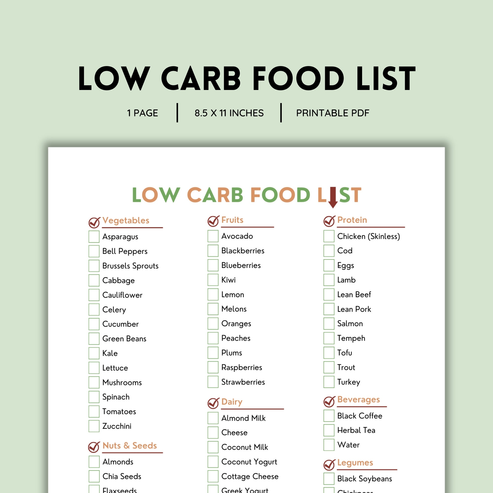 Whether you are following a low carb diet for weight loss, better health, or just trying to cut back on carbs, having a printable list can make meal planning a breeze. You can take it with you to the grocery store or use it to plan your meals for the week.